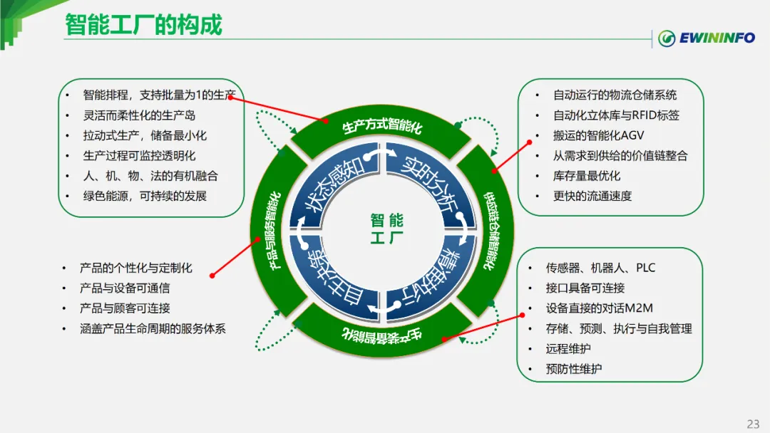 要构建一个真正的智能工厂,离不开五大关键要素:智能化工厂环境、真实环境机器对机器(M2M)资源利用、人的因素(包括人-机交互、数据安全等)、经济环境(商业模式、服务内容等)以及技术因素(系统工程、智能生产技术等)。这五大要素相辅相成,共同构成了智能工厂的基石。