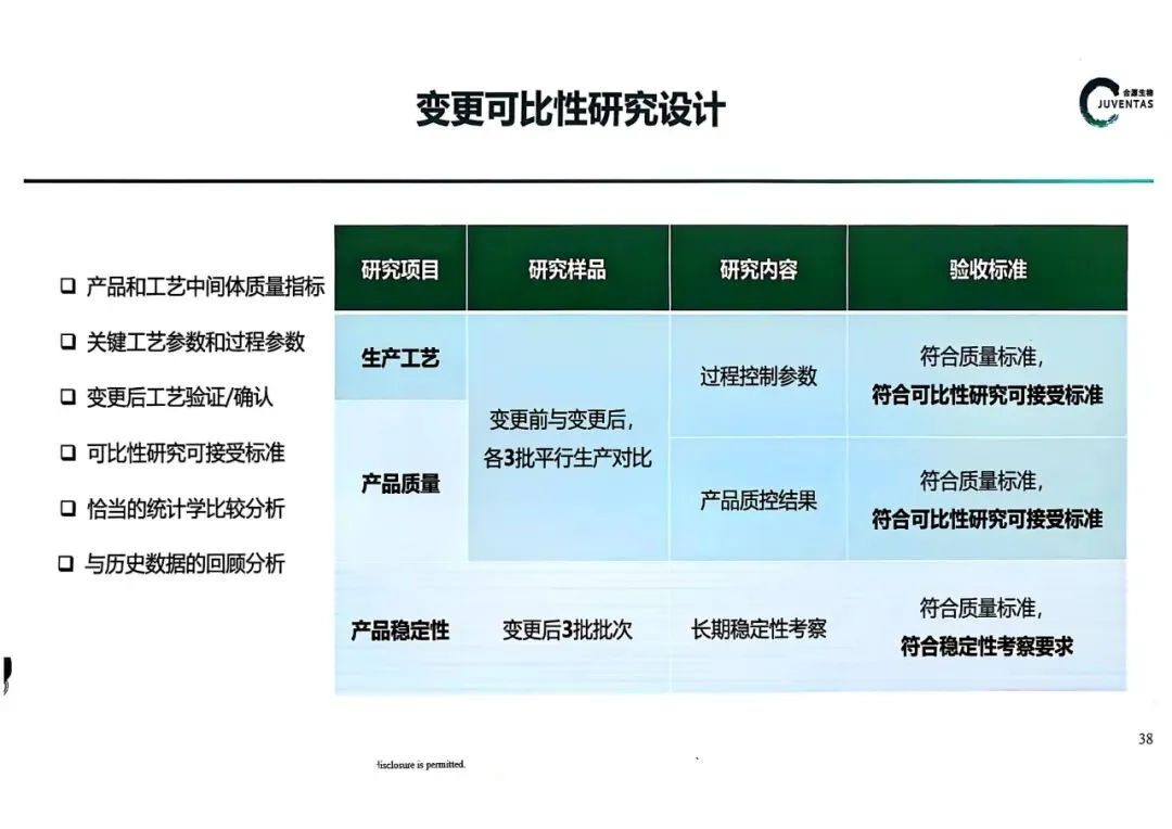允许变更范围(过渡期内):微小变更(如培养基品牌替换)需提交“风险评估报告”;重大变更(如生物反应器升级)需启动“可比性研究”(3批头对头对比)