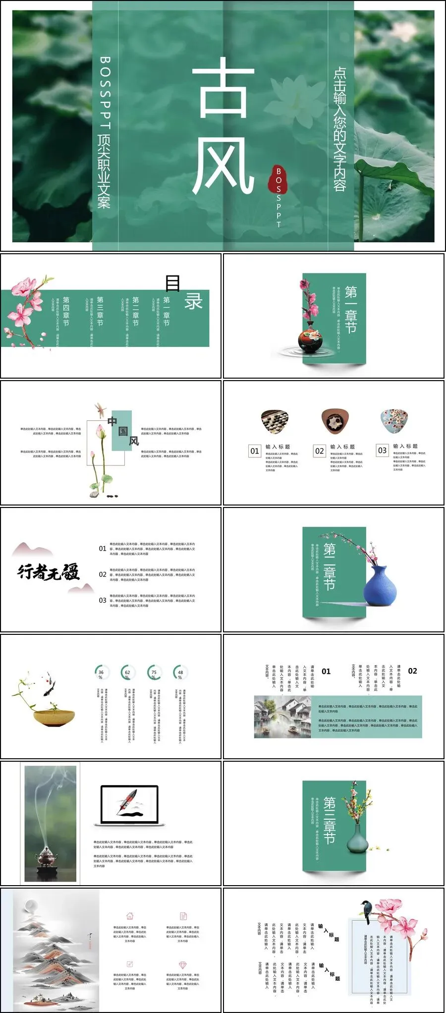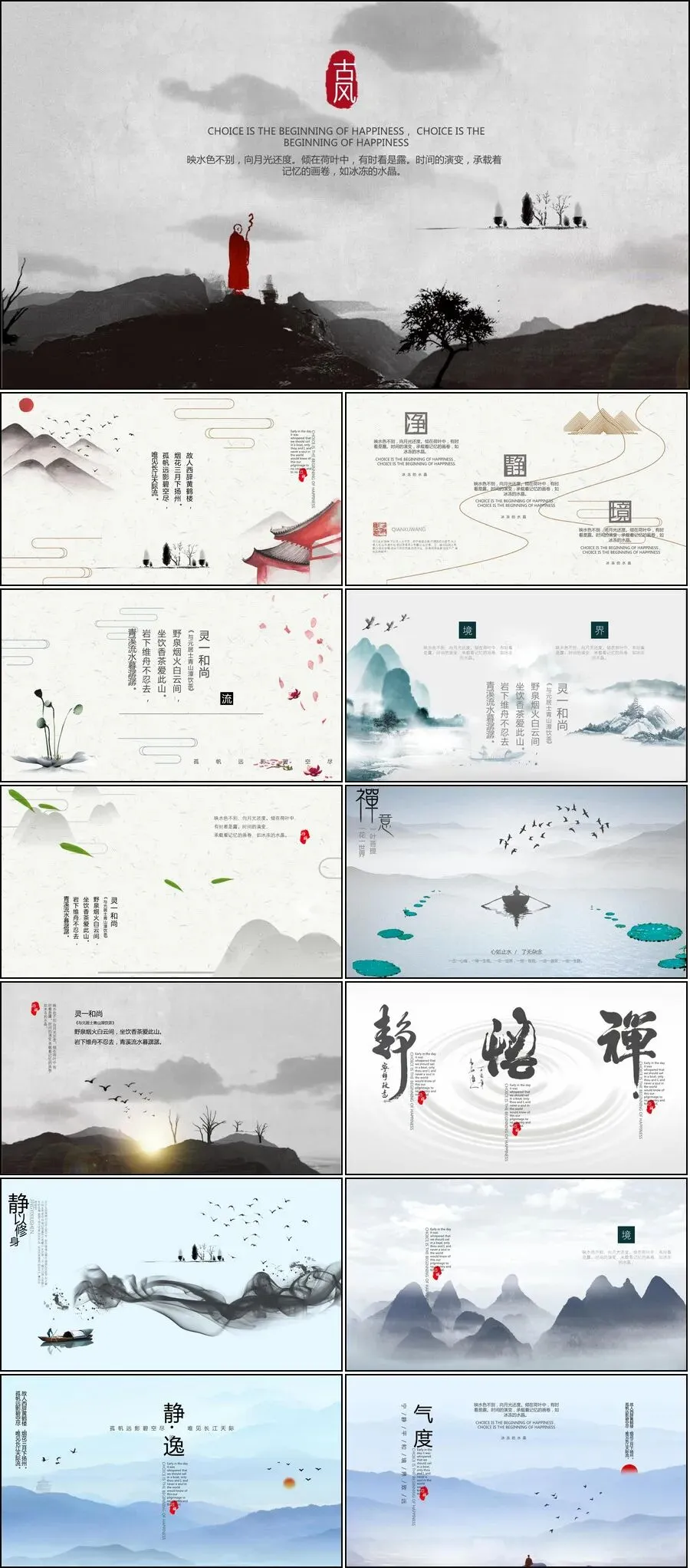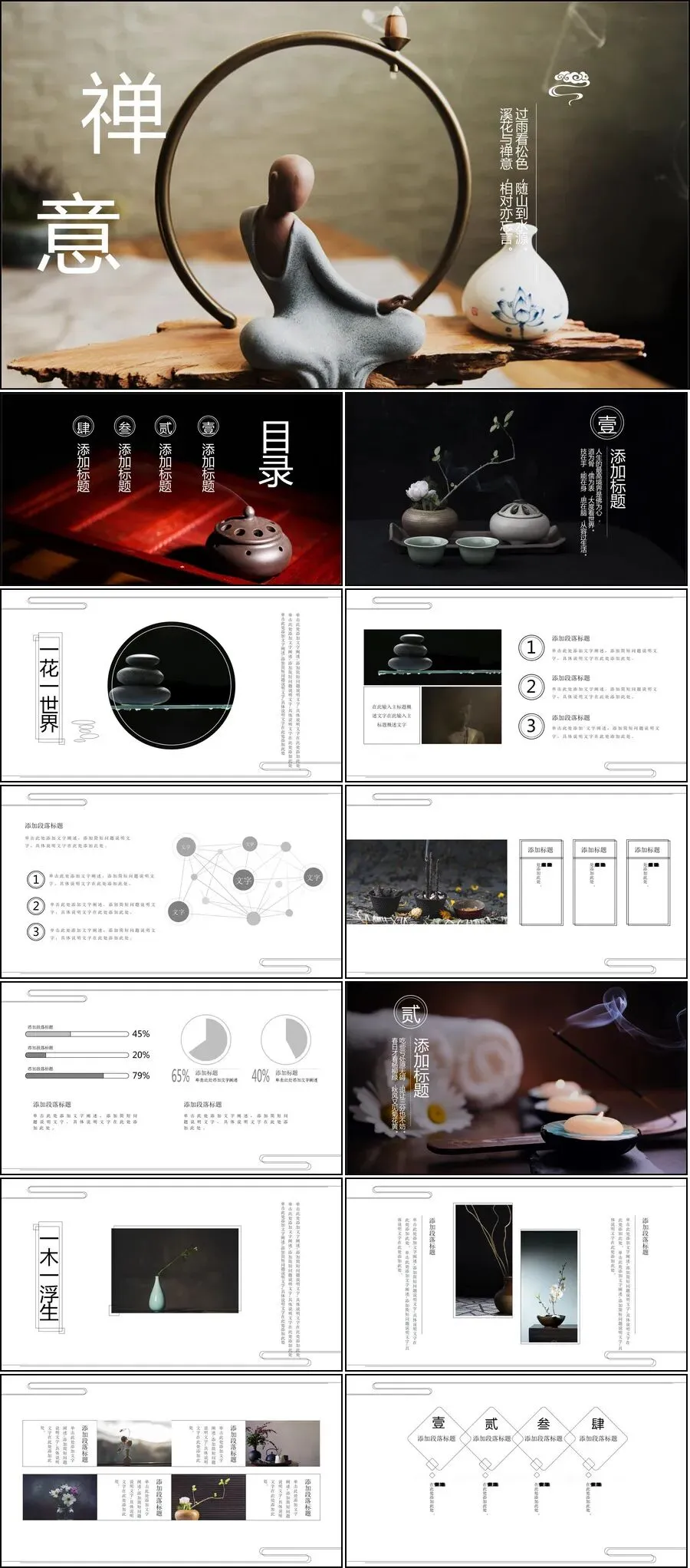 【27套古禅民风工作汇报等PPT模板】