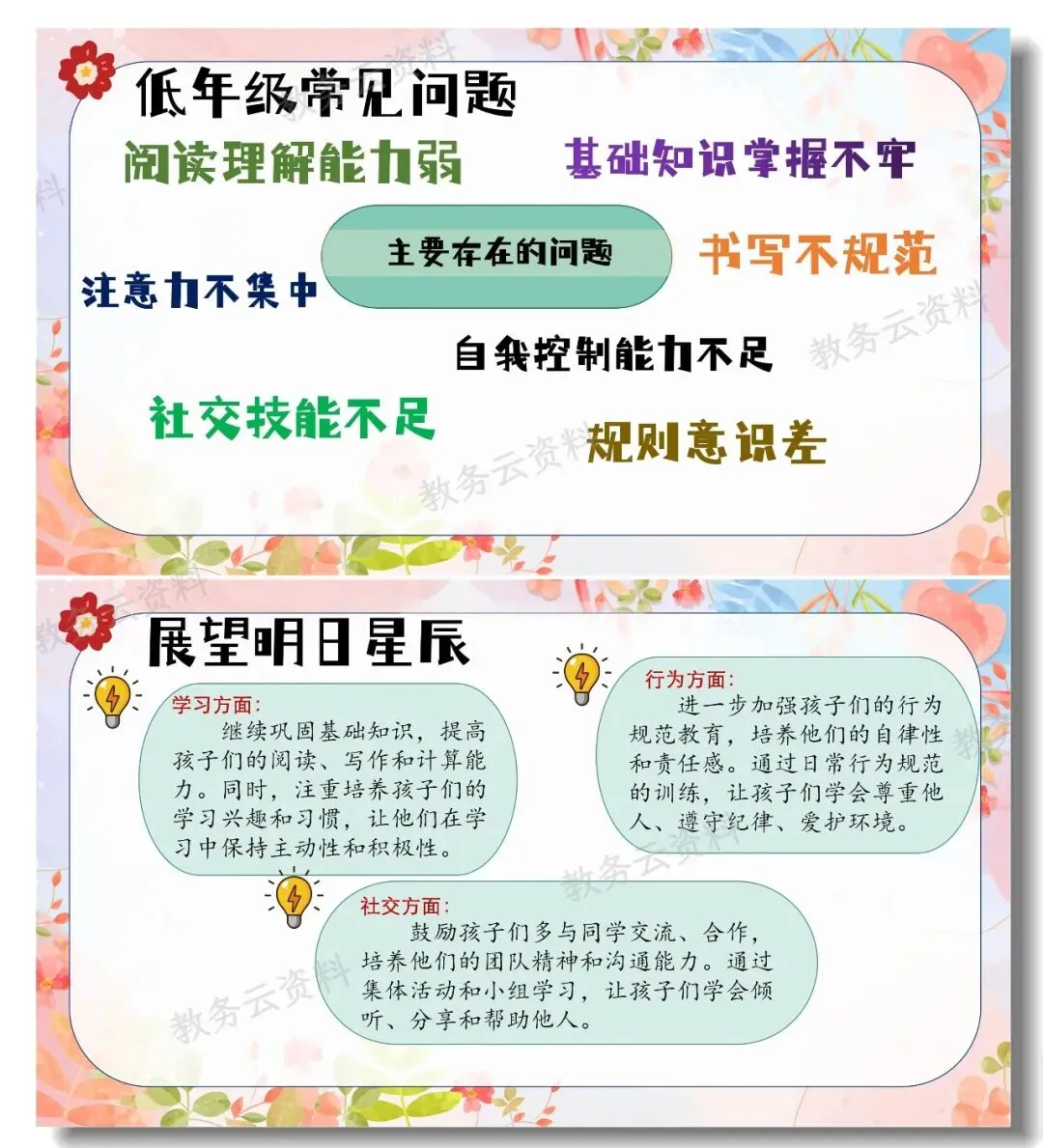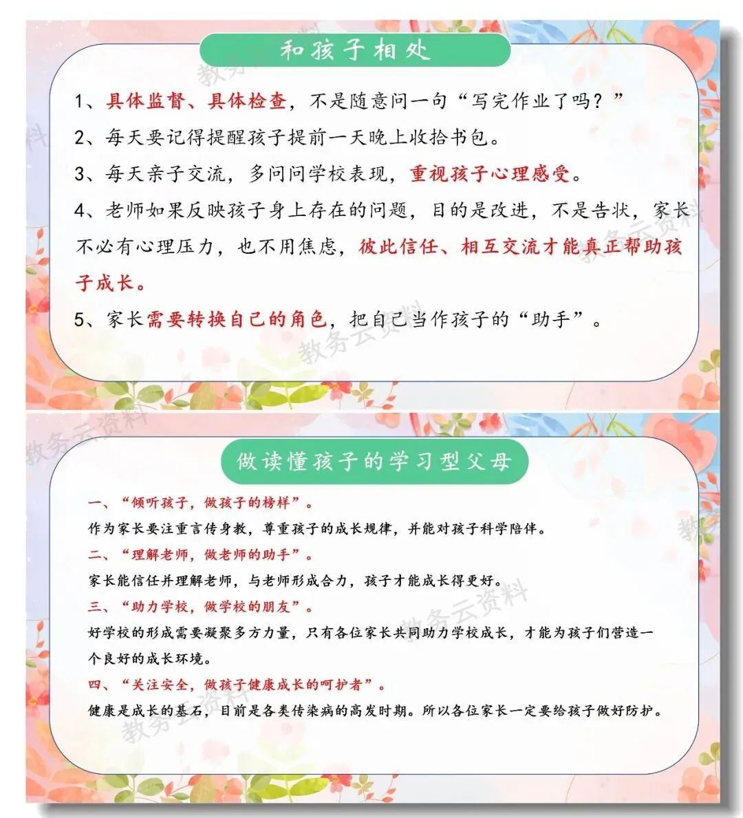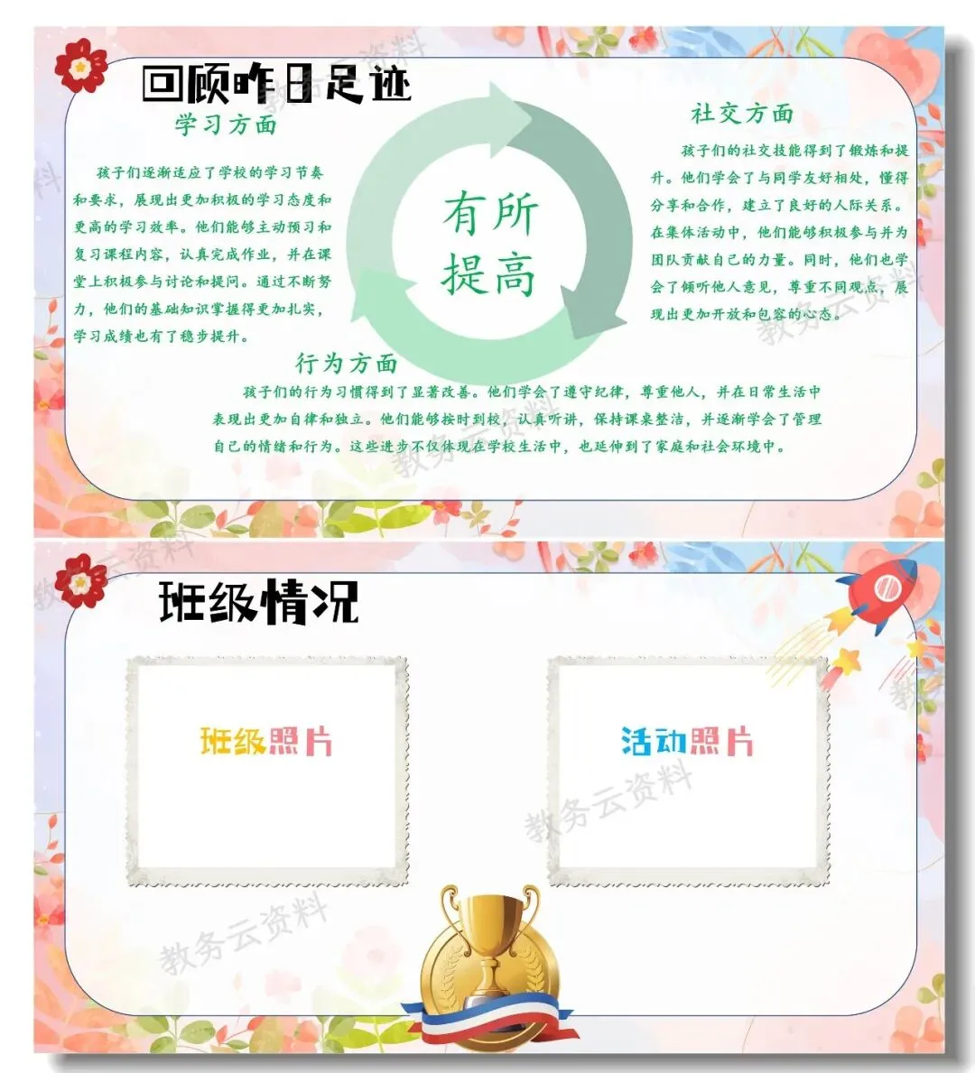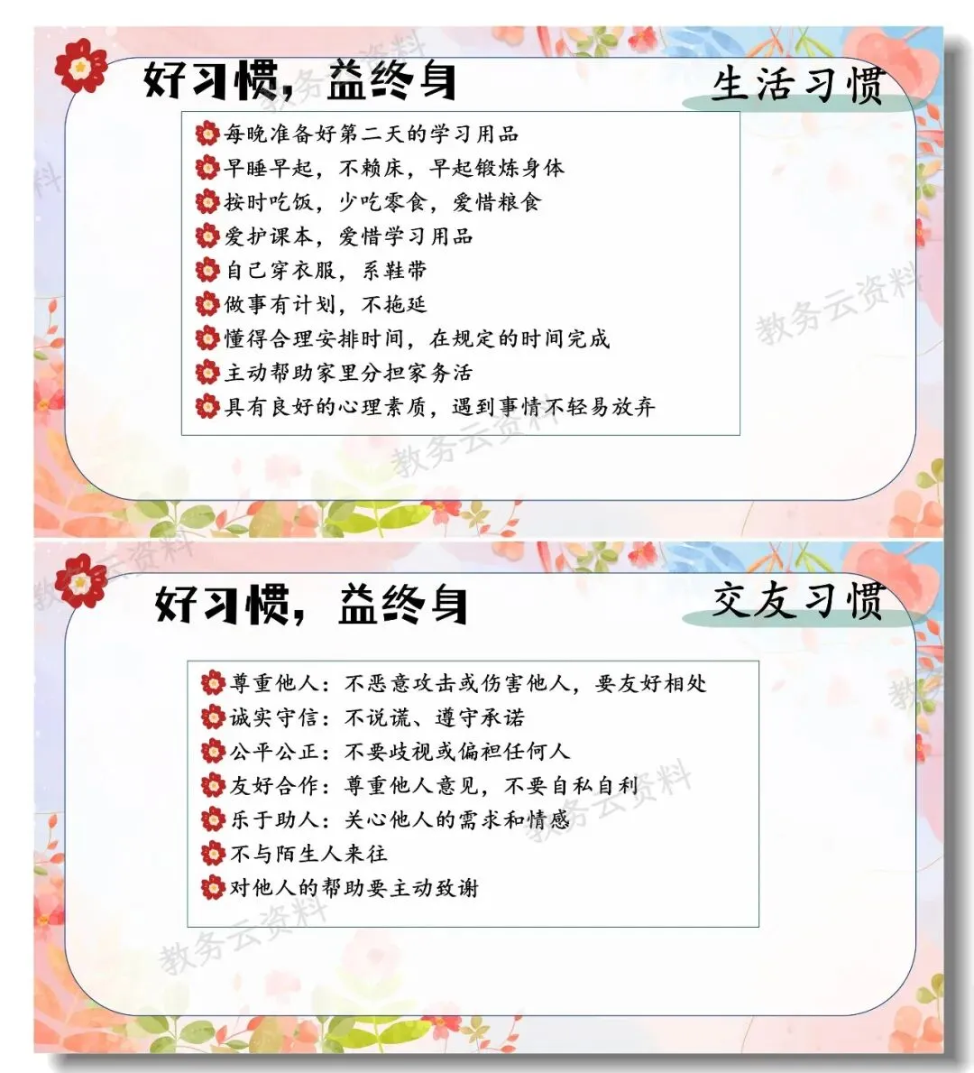 很高兴在这与您相遇,如果您是一位班主任老师,每天除了应对繁重的教学工作,还要加班整理班级、教务、教研、课件PPT资料,请关注下方的“教务云资料”,让我们风雨同路、一起成长!开学了,如何帮孩子快速适应?这场家长会给出了答案:安全是底线,习惯是核心,语文是重点,家校是合力!今天分享的是一年级春季下学期,开学家长会ppt课件,主题是《循序而上,“习惯”成花》,新学期,我们与孩子一起“循序而上”。课件PPT一共44页,配套班主任语文老师家长会发言稿。(文末有课件资料的获取方式)点击下方图片,打开小程序,付费查看,可自助下载资料,课件下载后无水印、可编辑、可修改!