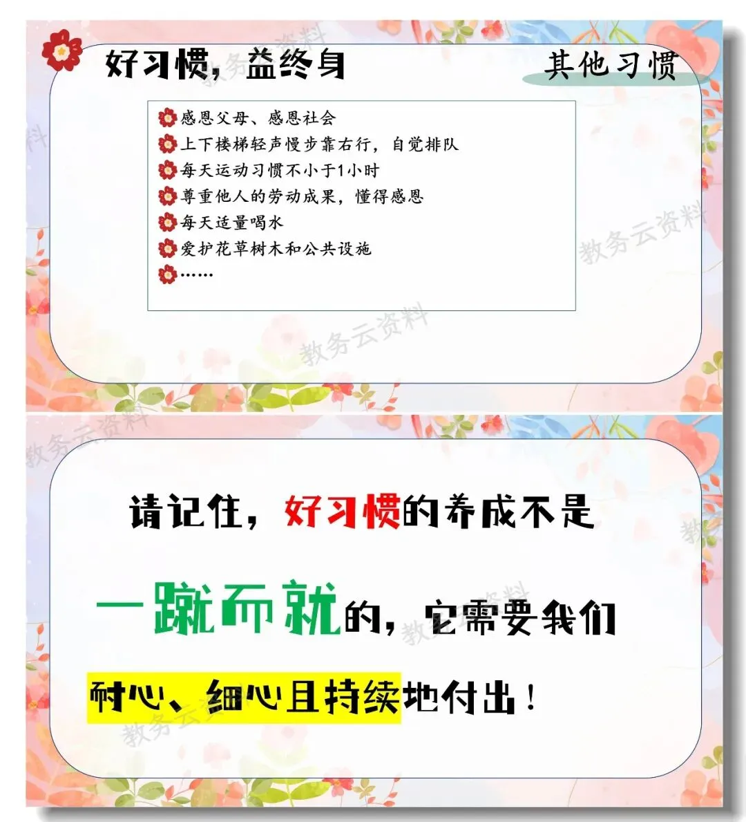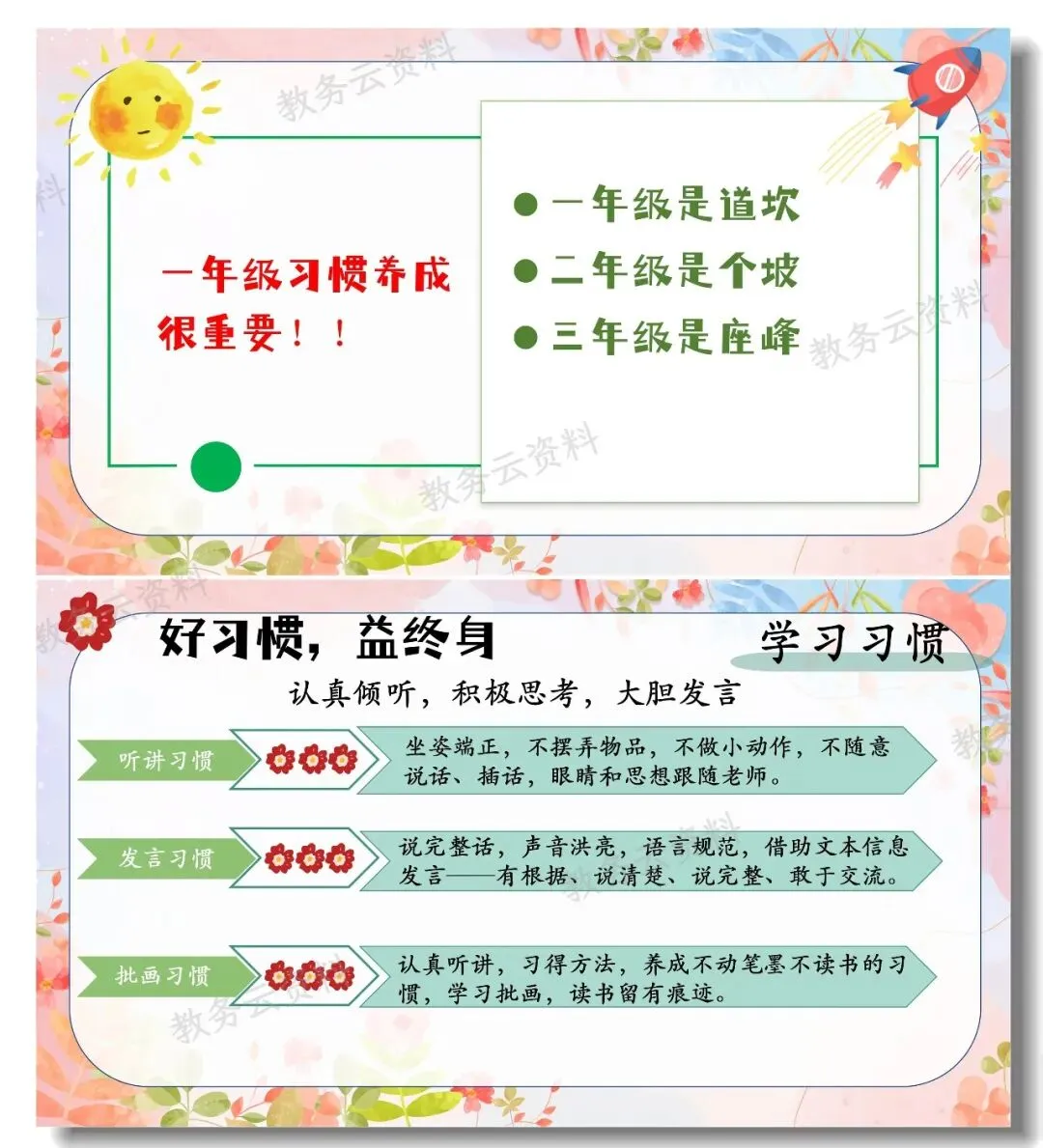 【一年级春季下开学家长会ppt】循序而上,“习惯”成花(内附课件+班主任发言稿)
