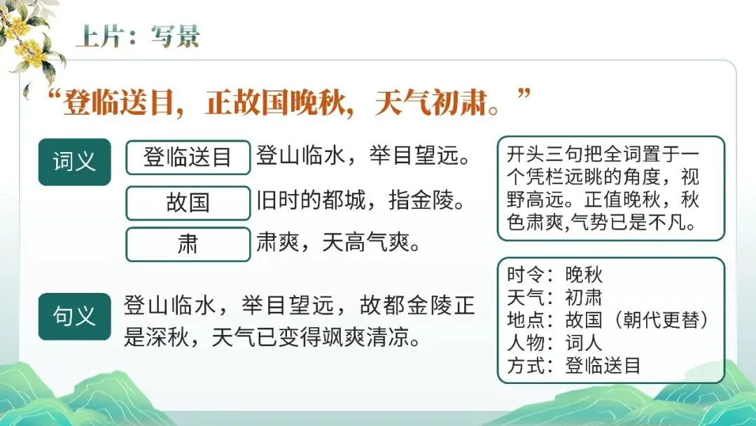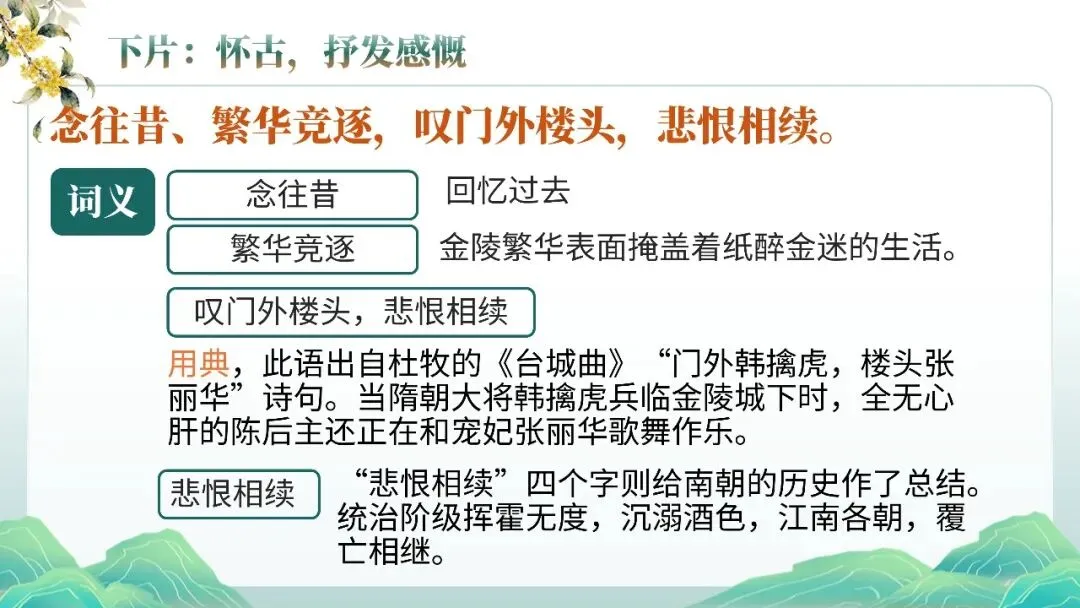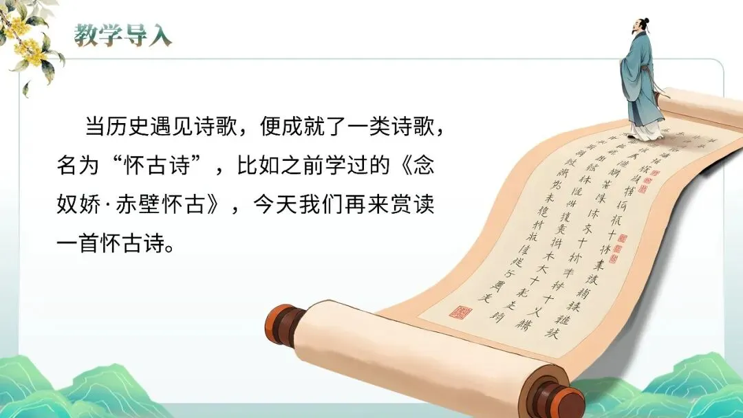 本期更新的课件为统编高教社版中职语文职业模块古诗词诵读单元《桂枝香·金陵怀古》,共36页。