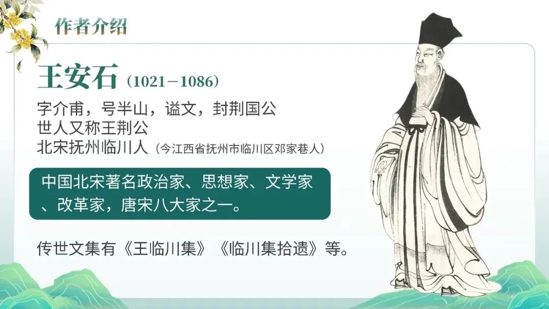 本文是北宋文学家王安石的代表作之一,通过描绘金陵(今南京)的壮丽景色和对六朝兴衰的深沉思考,表达了词人对国家命运的深切关怀。上片重在写景,下片转向怀古,通过对六朝旧事的回顾,抒发了对历史兴衰的感慨,以及对当权者沉湎酒色的批判。这首词不仅在艺术上成就卓越,更体现了王安石作为政治家的远见卓识和忧国忧民的情怀。