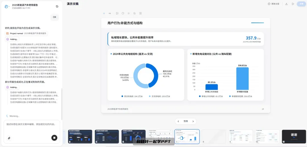 第三步,大纲没问题,就可以让它生成 PPT 了。