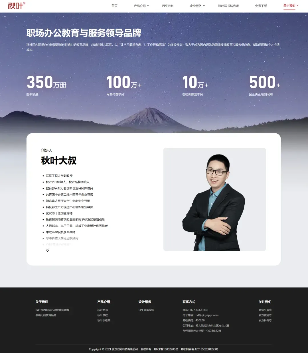 最后我们又试了秋叶 PPT 的官网链接,看看它能不能把这个页面,做成品牌介绍 PPT ↓