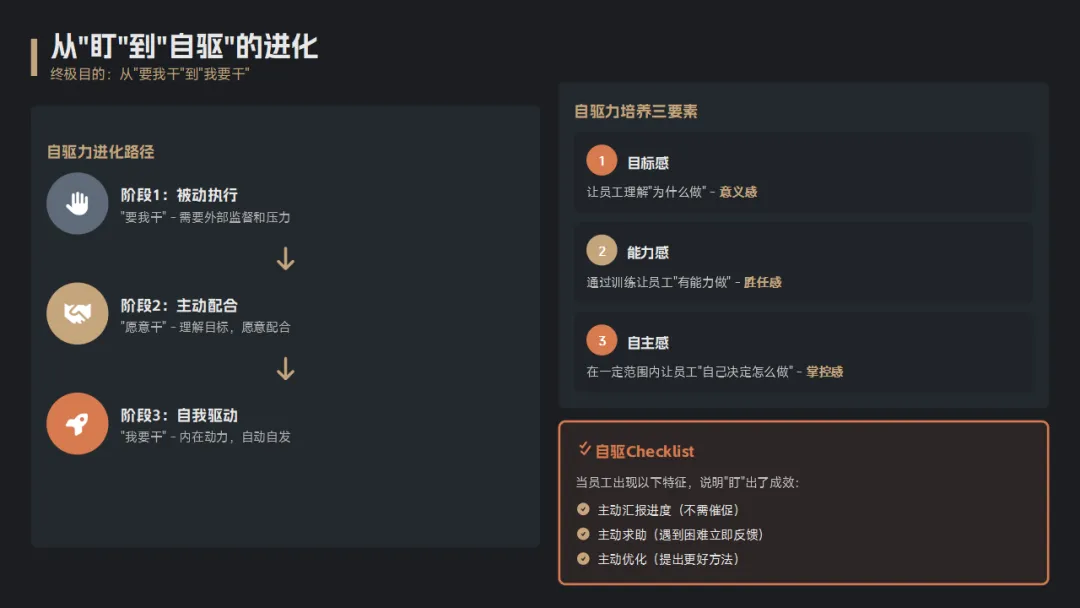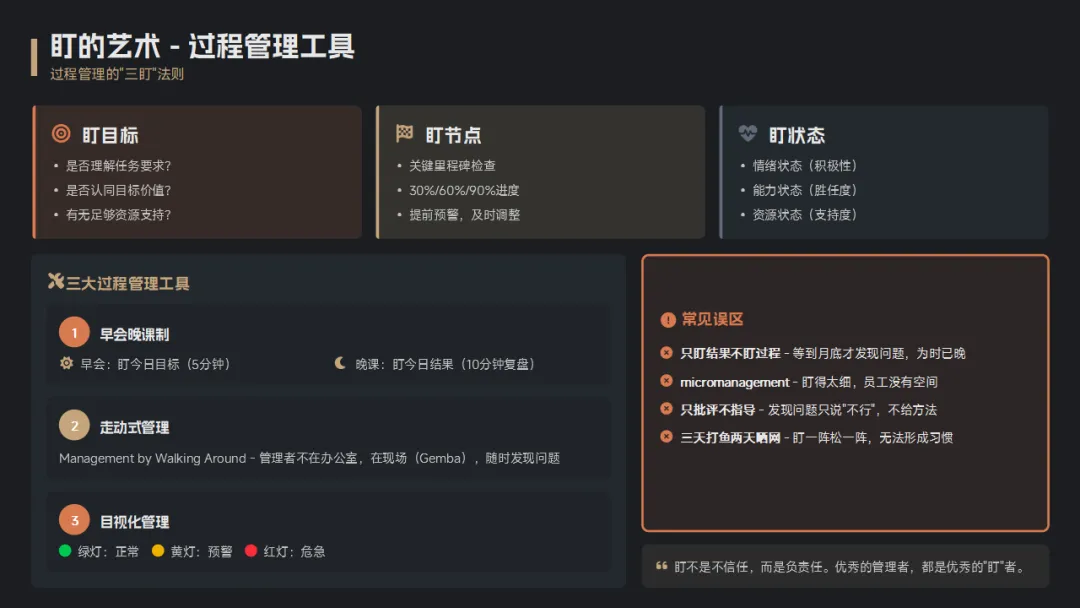 首先,我要澄清一个误区。"盯"不是微观管理,不是不信任,不是找茬。