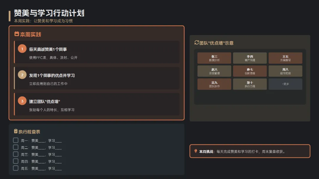 熟练后鼓励优化。这时候员工已经掌握了基本技能,可以释放潜能,提出更好的方法。