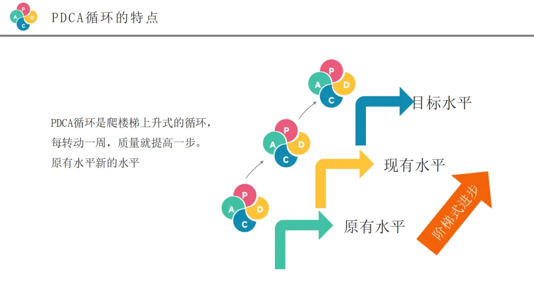 "。PDCA循环不是一次性的活动,而是螺旋式上升的过程。每一个循环结束后,我们都要总结经验教训,为下一个更高水平的循环做好准备。