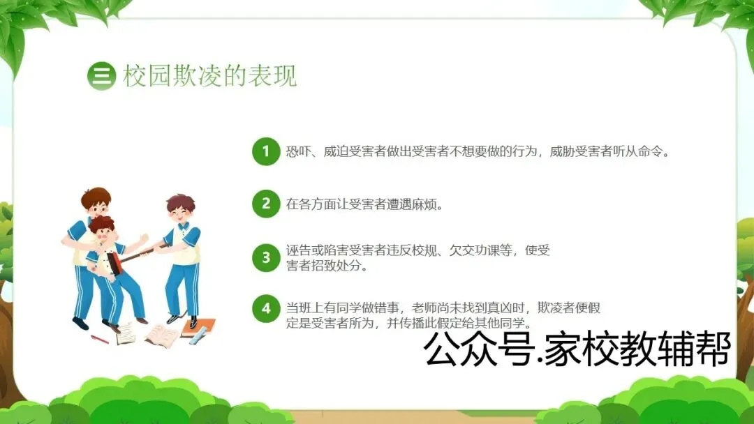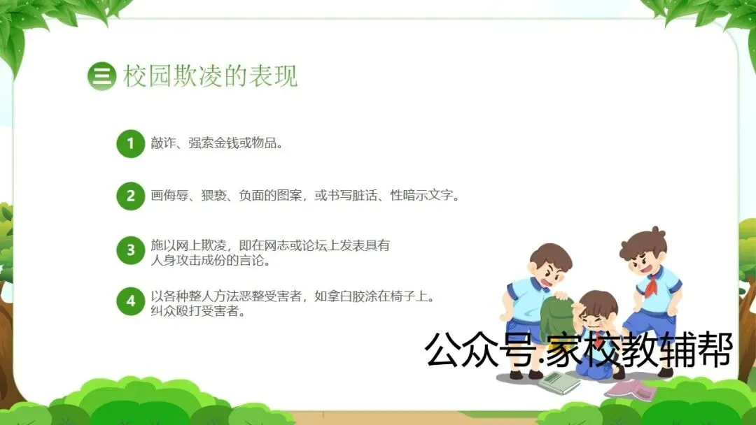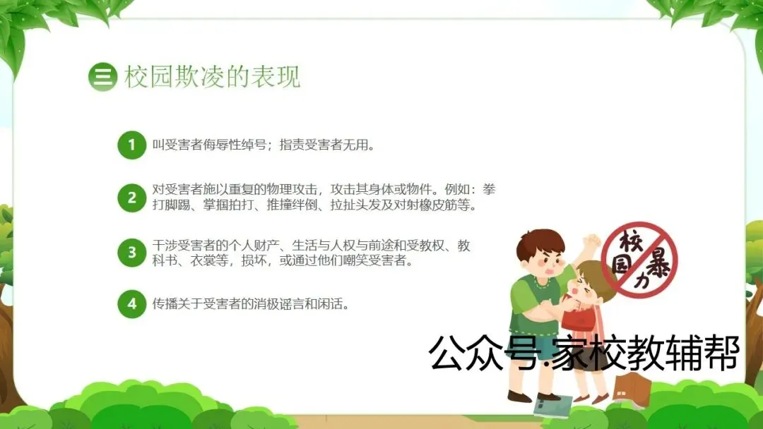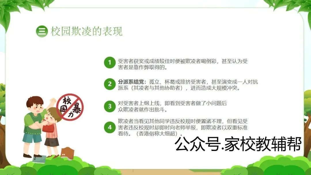因此,我们必须正视校园欺凌,提高防范意识,学会正确应对。今天,我们将一起了解:如何识别欺凌的信号,遭遇欺凌时该如何求助,以及怎样运用法律与规则守护自己与他人的权益。校园霸凌防治需要全社会共同努力。如果你或身边人正在经历这些,请一定不要沉默,勇敢向老师、家长求助。