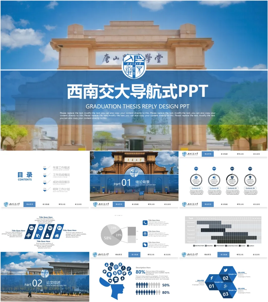 注:本推文内部分 PPT 模板收集自西南交大官方微信公众号,版权归原出处所有。本次分享仅用于交大学子校内学习、答辩、汇报等非商业用途,不作任何商业盈利。如有侵权,请联系我们及时删除。