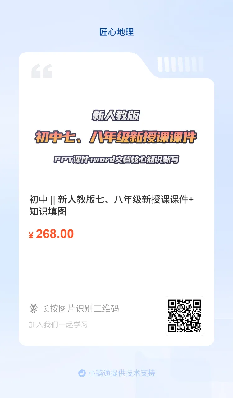 方式①:扫描下方二维码,获取人教版七八年级新授课课件(附赠知识填图)