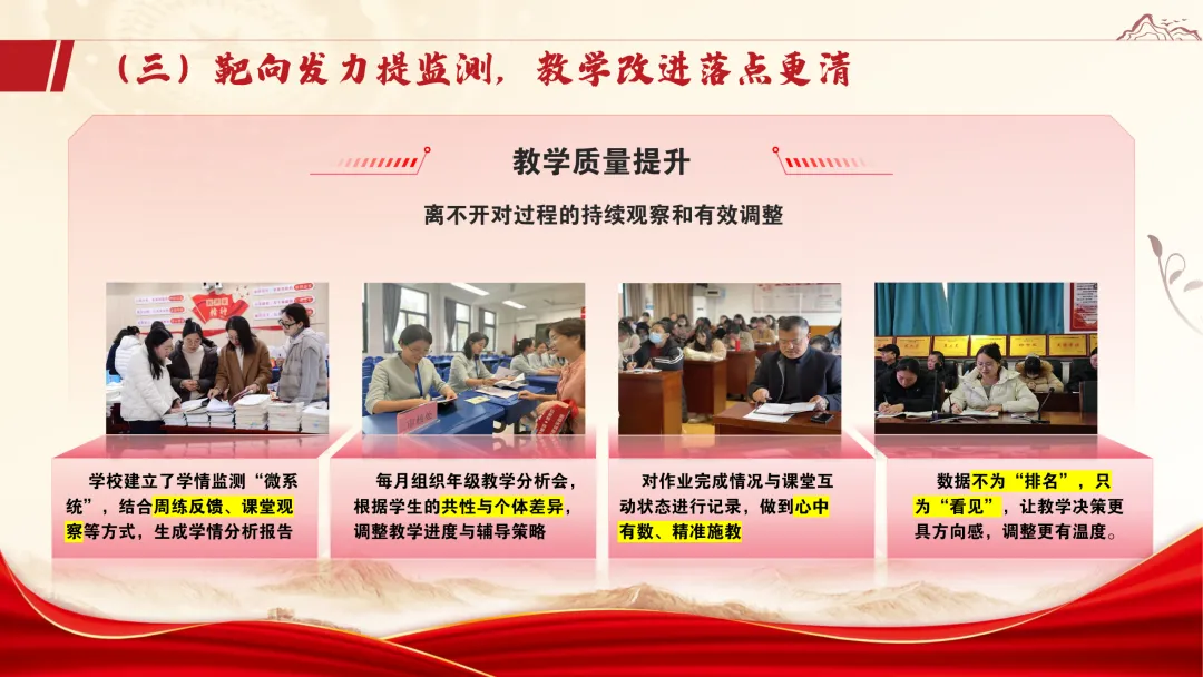 教学质量提升离不开对过程的持续观察和有效调整。本学期,学校将建立学情监测“微系统”,结合周练反馈、课堂观察等方式,生成学情分析报告。