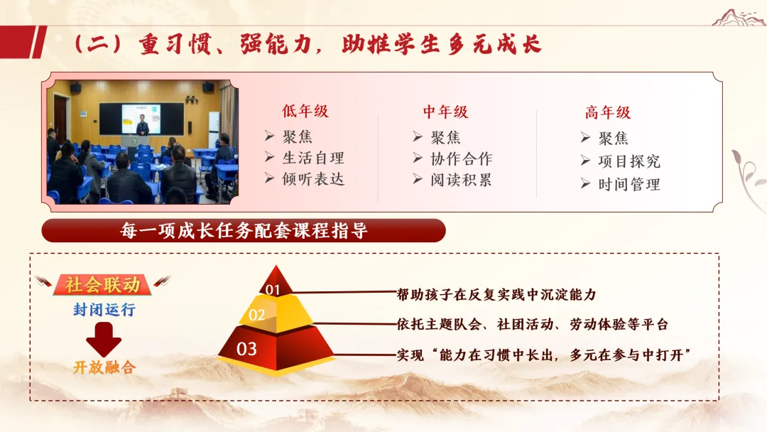 构建活动“练兵场”,打通实践“最后一公里” 设计成长“多赛道”,平衡发展不落一人 运用评价“指挥棒”,推动五育协同共进 链接资源“共育圈”,激发协同新合力