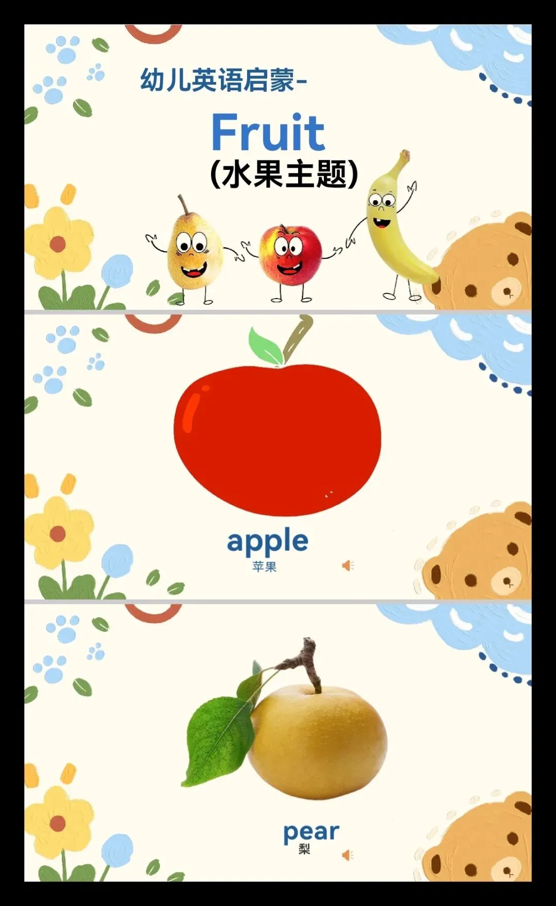 >(原创)幼小衔接英语启蒙PPT课件|主题《水果》系列PPT30页+音频