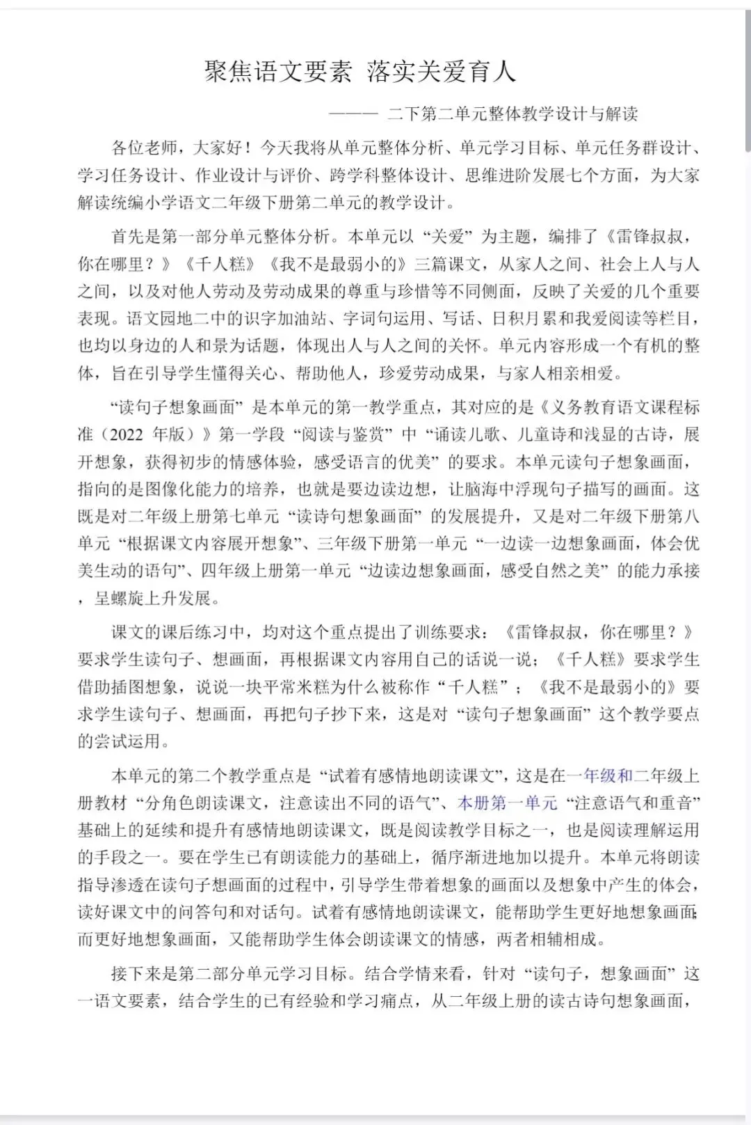 >二年级下册语文第二单元大单元说课ppt+说课稿,有偿资料,需要加15015851778