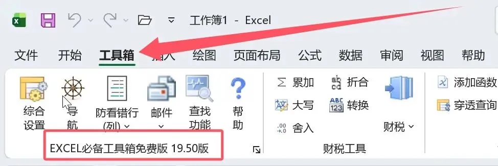 安装完成后,直接打开excel表格,在excel的菜单选项中会多出一个工具箱的选项卡,直接点击进入。