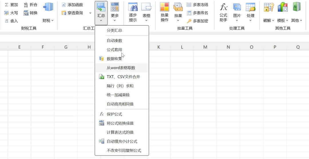 在汇总工具中可以一键数据重排、合并单元格、提取两表共同行、自动凑数、公式套用等。
