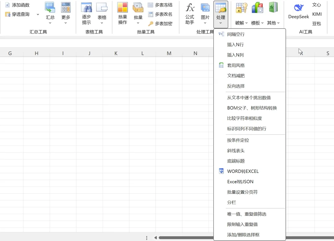 在处理工具中可以一键高清截图、添加水印、屏幕取色、间隔空行、插入N行N列、word转excel等。