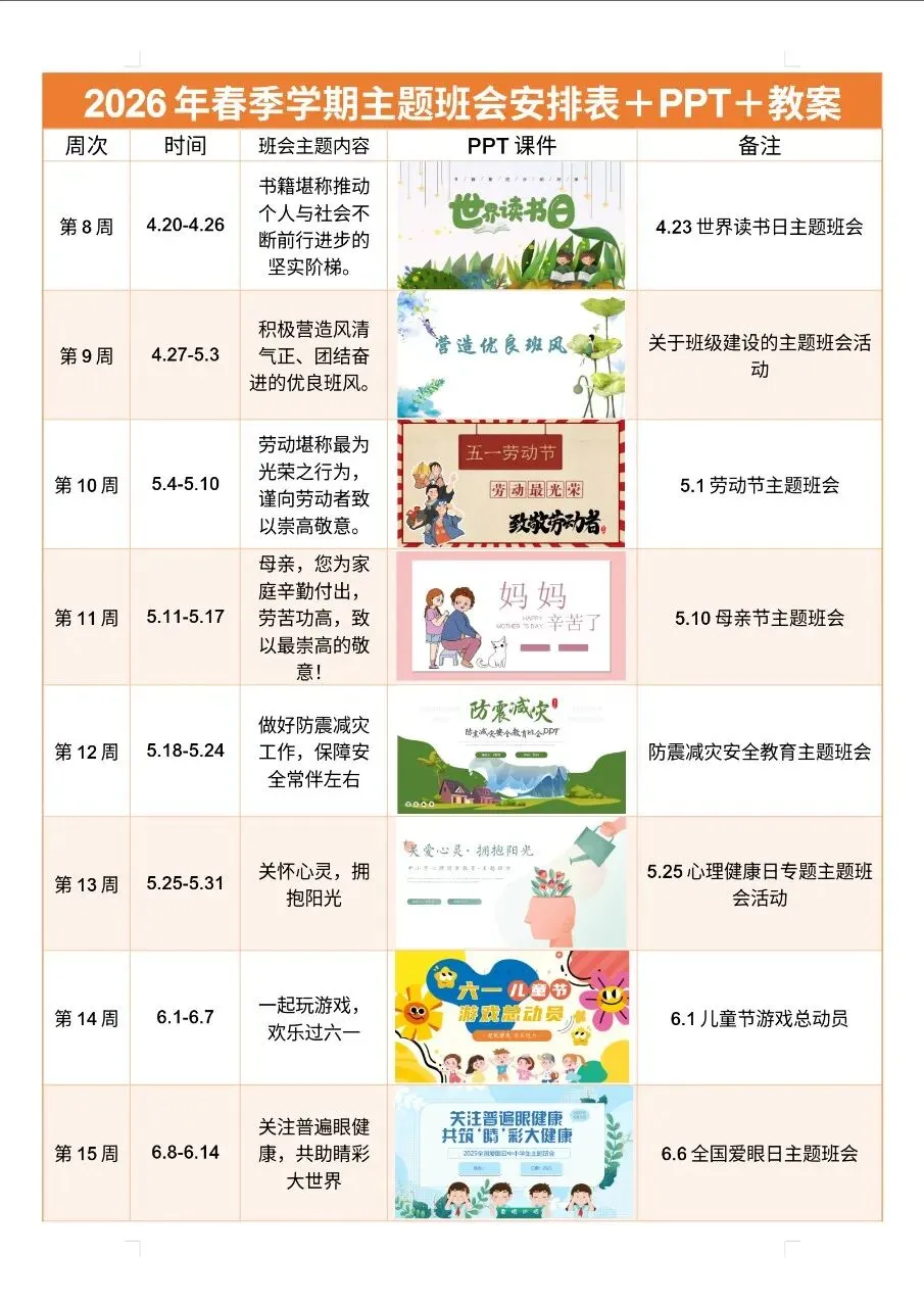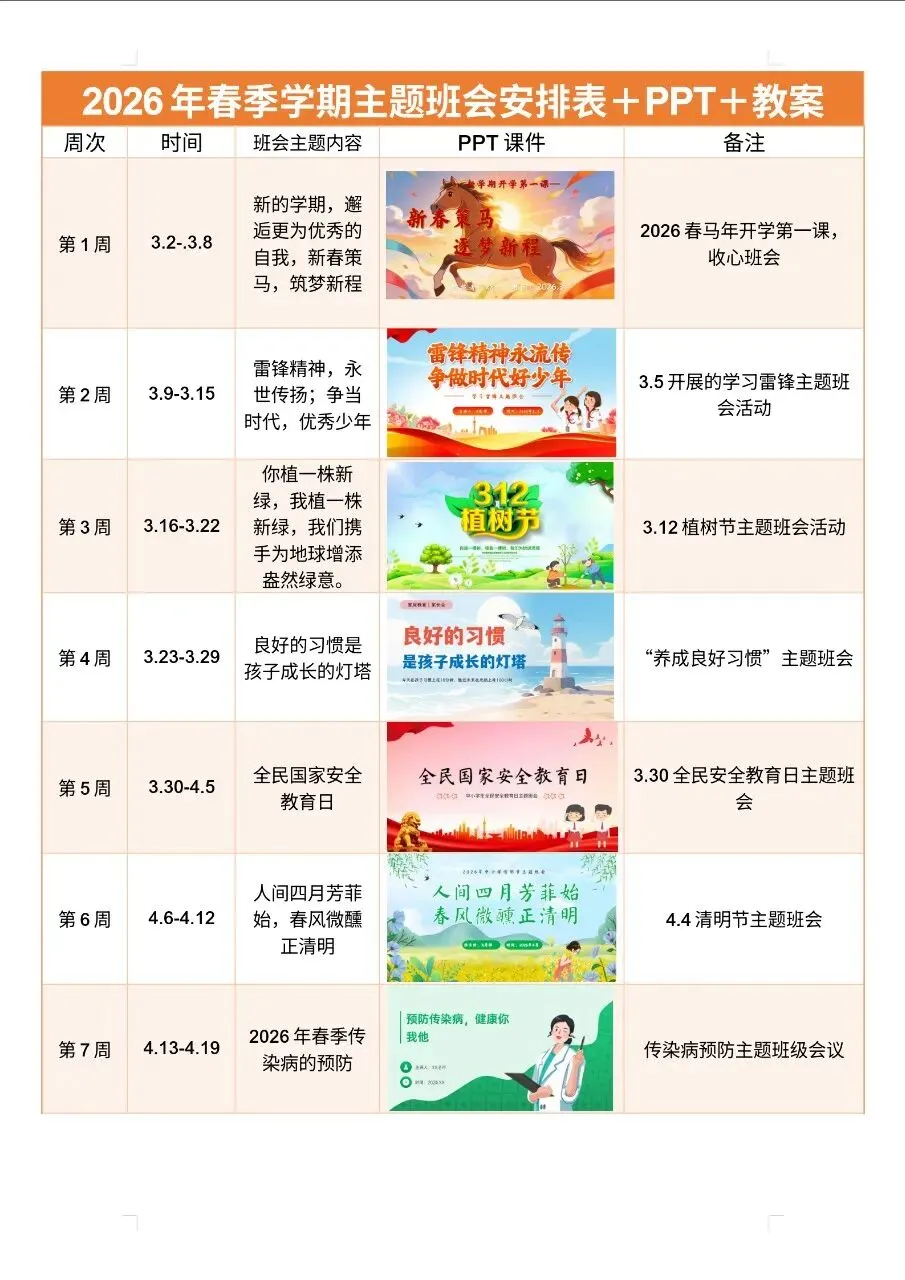 2026春19周主题班会全覆盖,从开学收心到假期安全,融节日、安全、成长于班会,筑梦新学期!