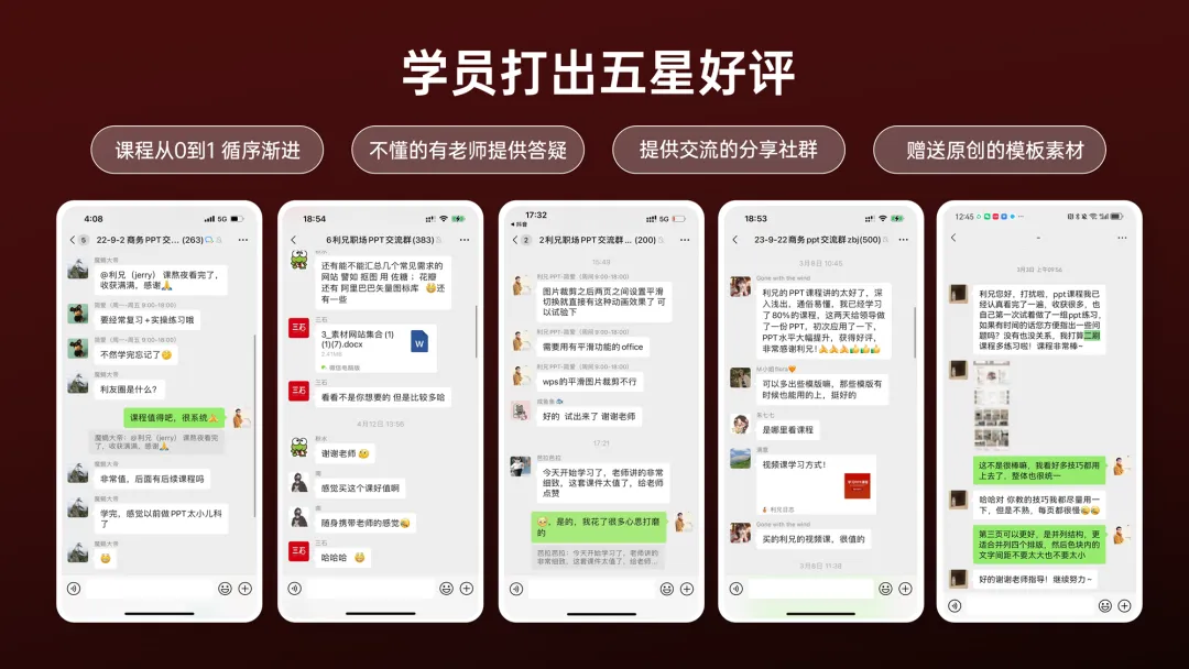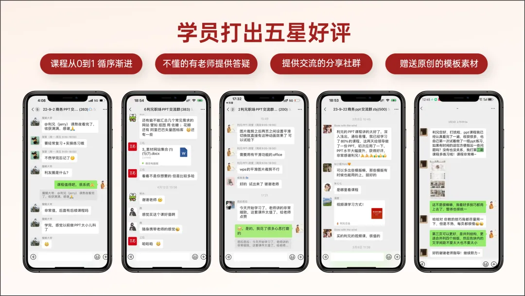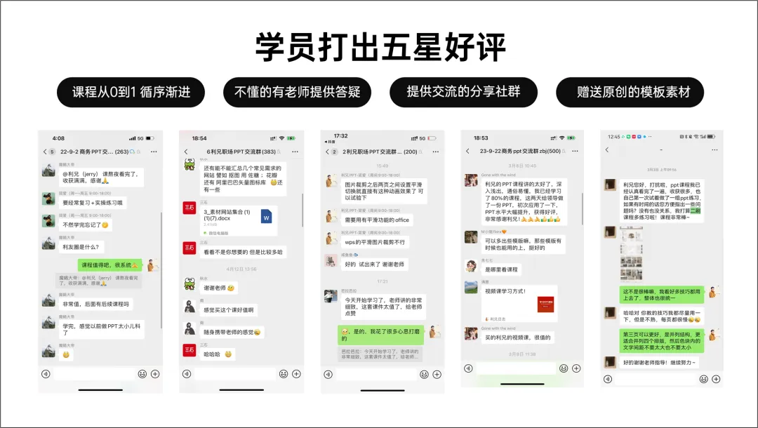五张图排成一排就够了,然后,我们把文案也提炼下,放进去。