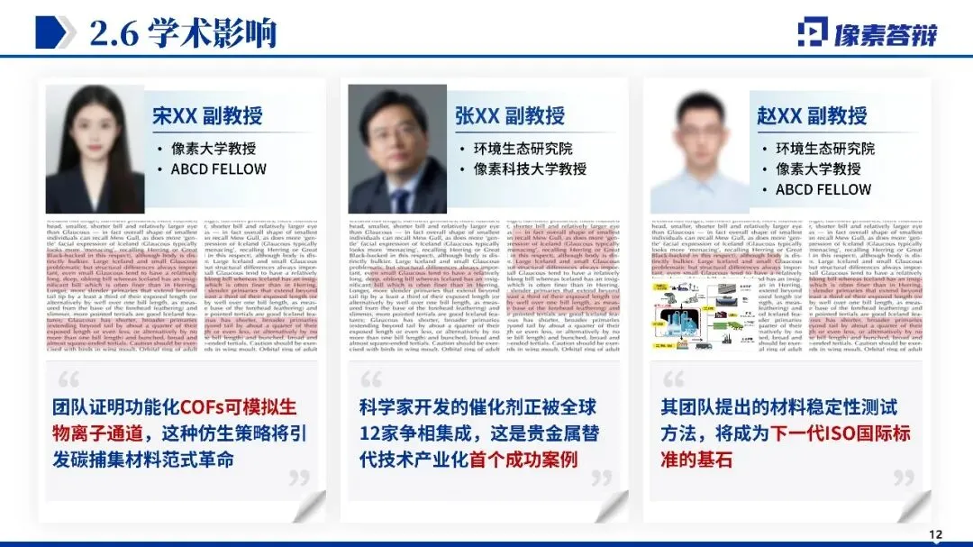 申请人具有国际顶尖机构研究经历,体现其学术训练的系统性。成果部分采用量化指标呈现:CO₂/N₂选择性突破200、催化剂成本降低98%、电解槽直流电耗≤3.8kWh/Nm³,数据具体可考,较单纯罗列论文更具说服力。