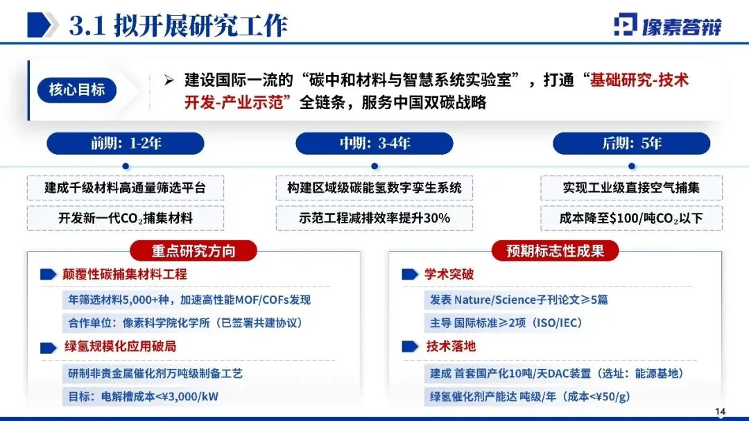项目聚焦“碳中和材料与系统优化”,选题直接呼应双碳目标这一国家重大需求。申请人将宏大主题分解为碳捕集材料、绿氢制备、能源系统三个具体方向,研究边界清晰,目标明确。