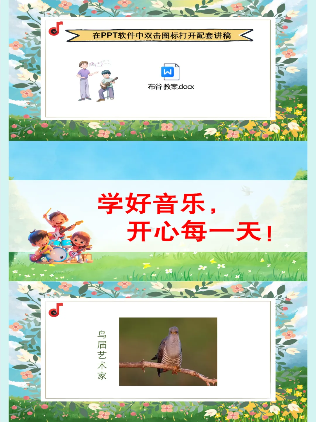 人音版🎸新版一年级音乐下册《布谷》公开课课件ppt,自制音乐课件ppt,共27页,音频已插入,可编辑😘😜