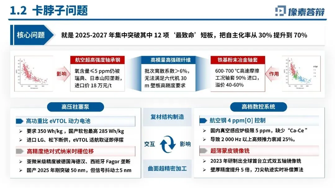 本项目为国家航空航天与高端装备专项技术创新研究,由像素大学多院系联合完成,核心围绕航空航天领域12项“卡脖子”短板展开攻关,以“材料-工艺-装备-测量”全链条自主可控为目标,通过母机突破、材料升级、数字孪生赋能等路径,计划2025-2027年将领域自主化率从30%提升至70%。项目聚焦eVTOL动力电池、高端碳纤维、超精密加工装备等关键领域,形成超精密母机、极致性能母材、数字孪生运维三大核心创新,落地后实现了显著的经济社会效益与产业带动效应,是支撑我国航空航天高端装备国产化的重要专项研究。