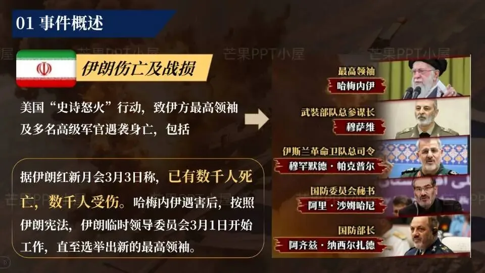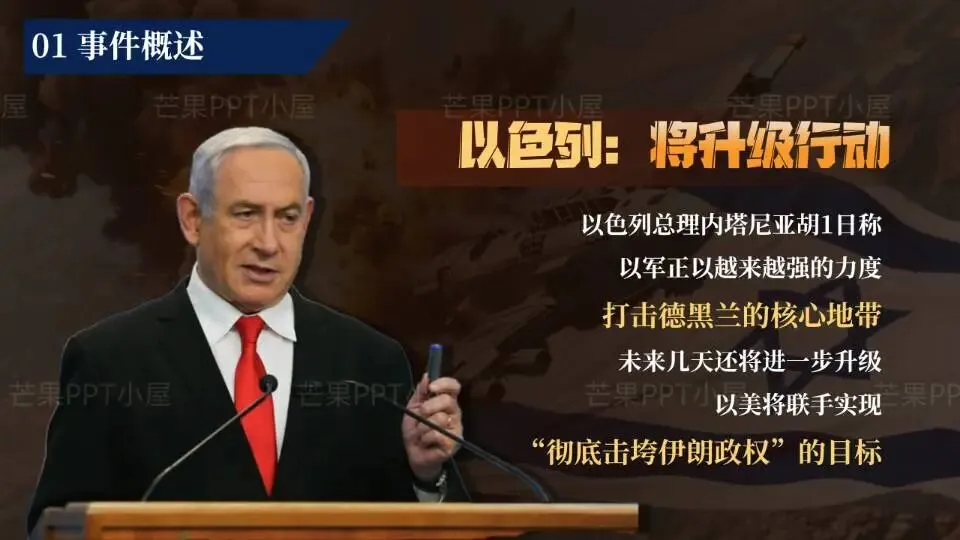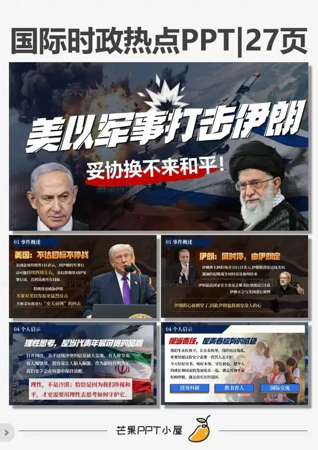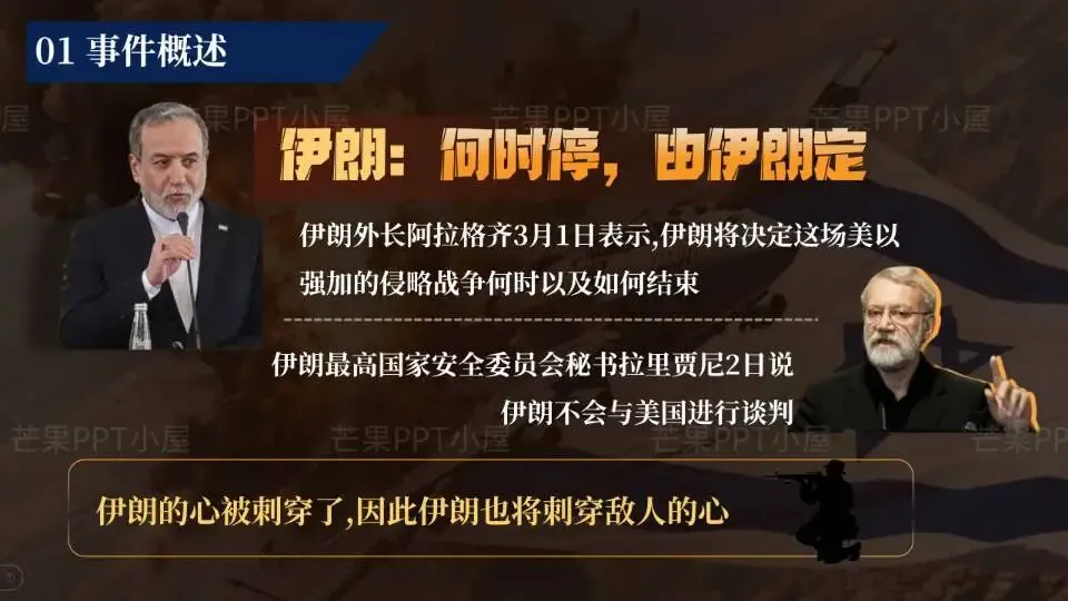 这份PPT基于最新事态,从战况到博弈,层层剖析。内容对应四大板块: