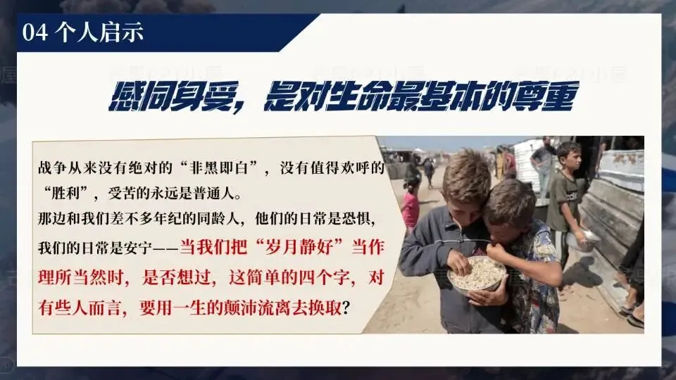 • 页数:ppt共27页• 内容素材:内含一个相关视频和3000字逐字稿稿• 建议演讲时长:10min左右• 适用场景:可用于时事热点,时政热点,国际新闻,国际形势分析 ,局势分析,战争与和平,战例分析等等主题演讲!