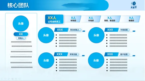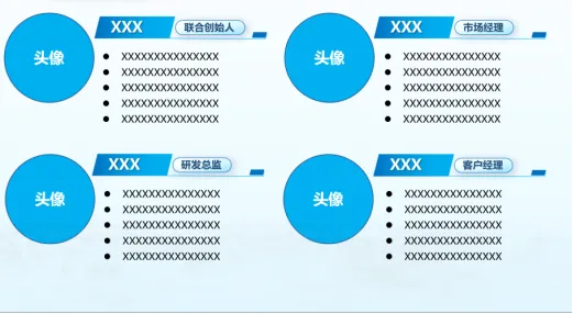 团队介绍只要介绍团队中创始人及最主要的几个核心成员就好。可以从团队的学历背景、名企历练、行业资源、荣誉成就四个方面来进行阐述。