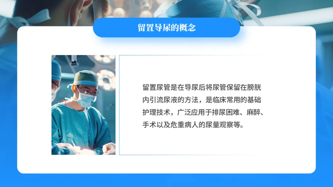 留置尿管是在导尿后将尿管保留在膀胱内引流尿液的方法,是临床常用的基础护理技术,广泛应用于排尿困难、麻醉、手术以及危重病人的尿量观察等。