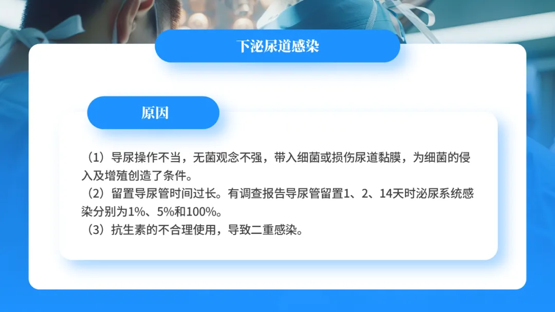 其原因为冲洗液对膀胱壁产生机械性损伤,膀胱黏膜受损;另外冲洗时尿管腔的尿液逆流入膀胱,同时部分患者由于尿管过小或膀胱痉挛,可出现冲洗液经尿道与尿管之间腔隙溢出,因而增加了尿道口细菌经腔外途径感染的机率。另外,在膀胱冲洗过程护理人员无菌操作观念不强,也可导致尿路感染。