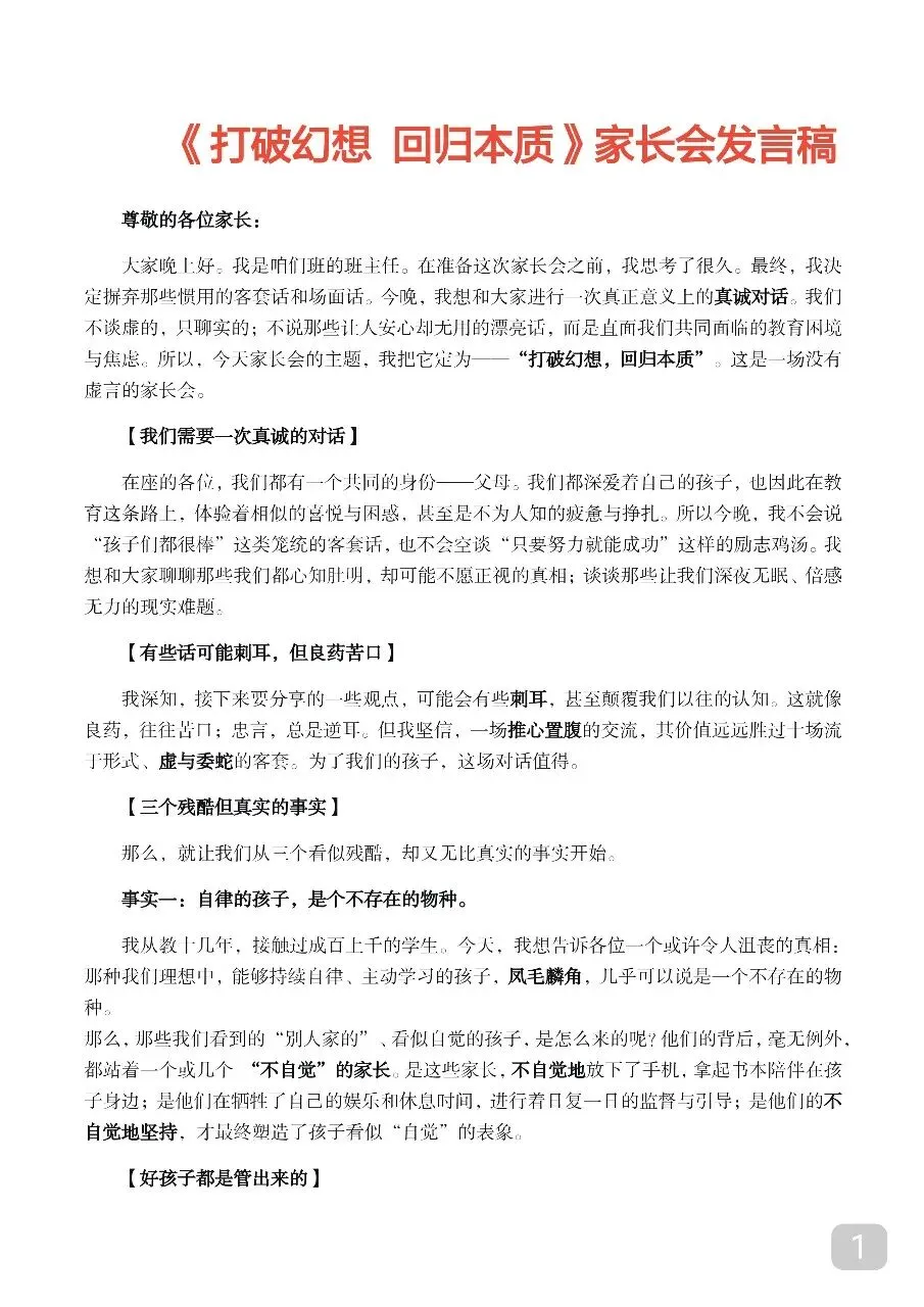 【通用】家长会PPT+逐字稿:打破幻想,回归本质