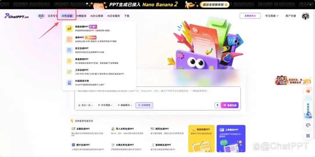 言归正传,ChatPPT生成答辩PPT的具体步骤,我们一步步展开说明: