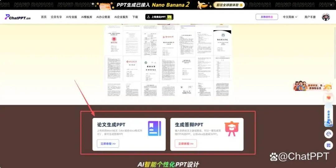 第一步:选择ChatPPT论文答辩版