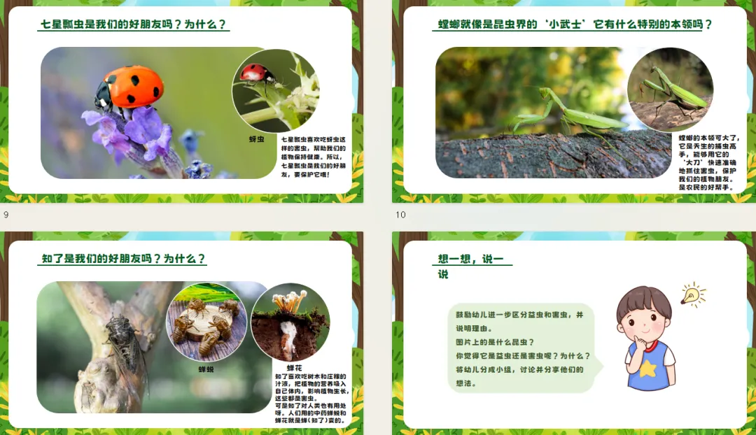 三、鼓励幼儿进一步区分益虫和害虫,并说明理由。