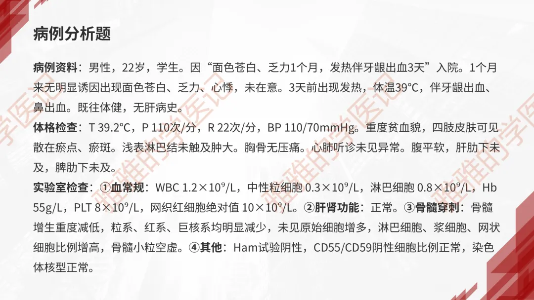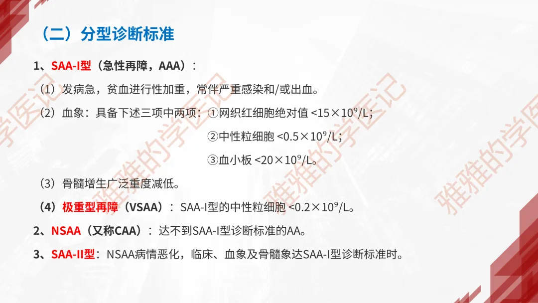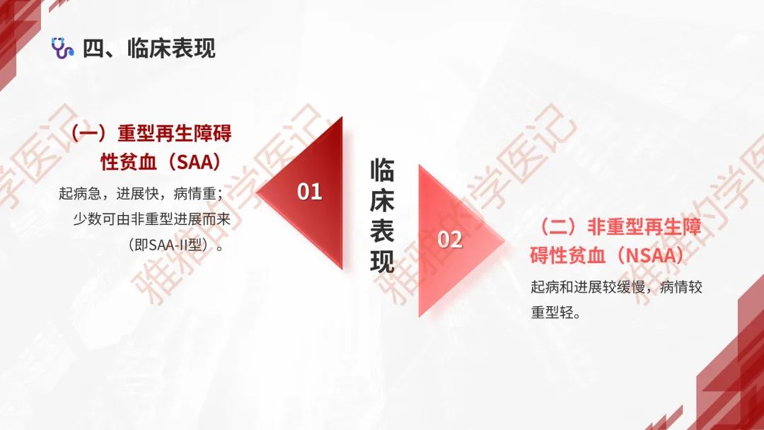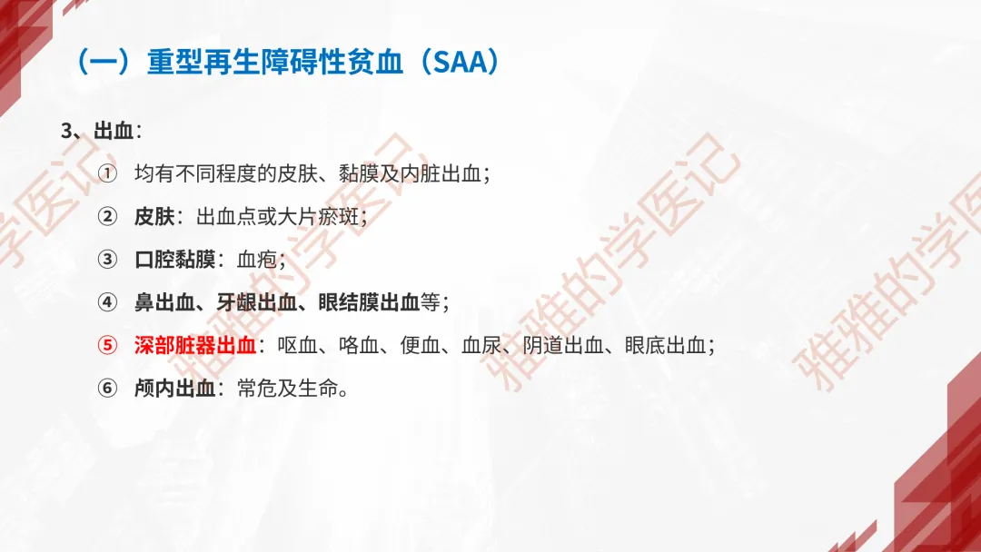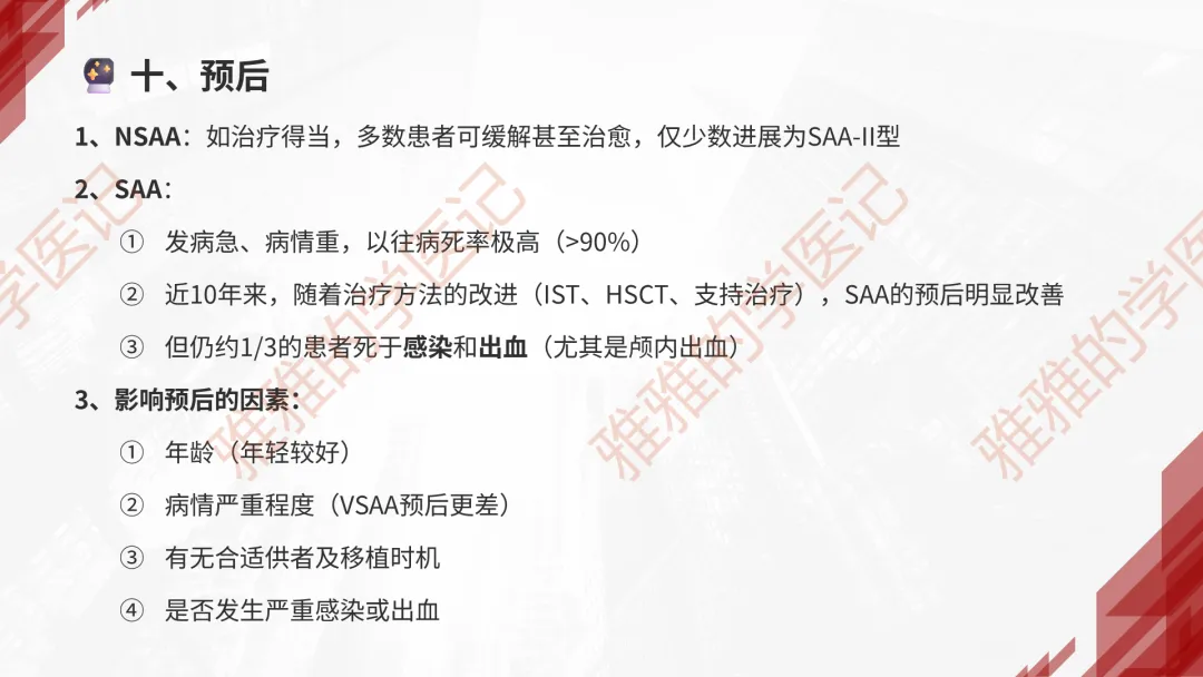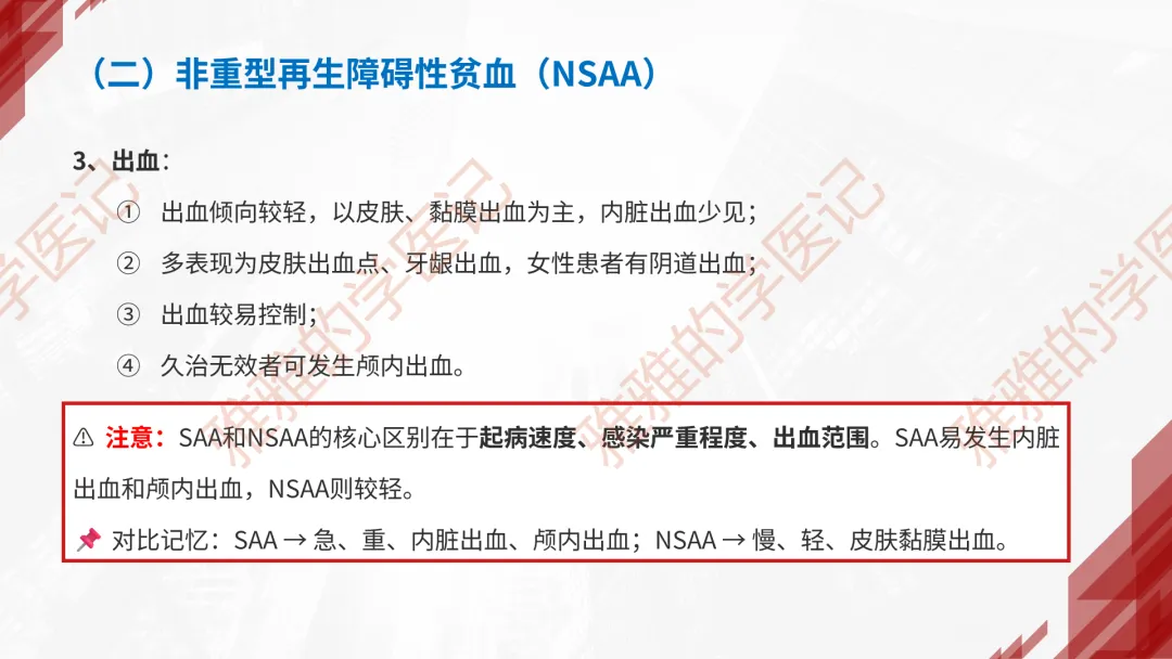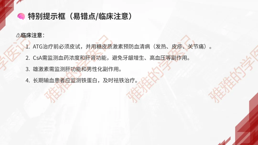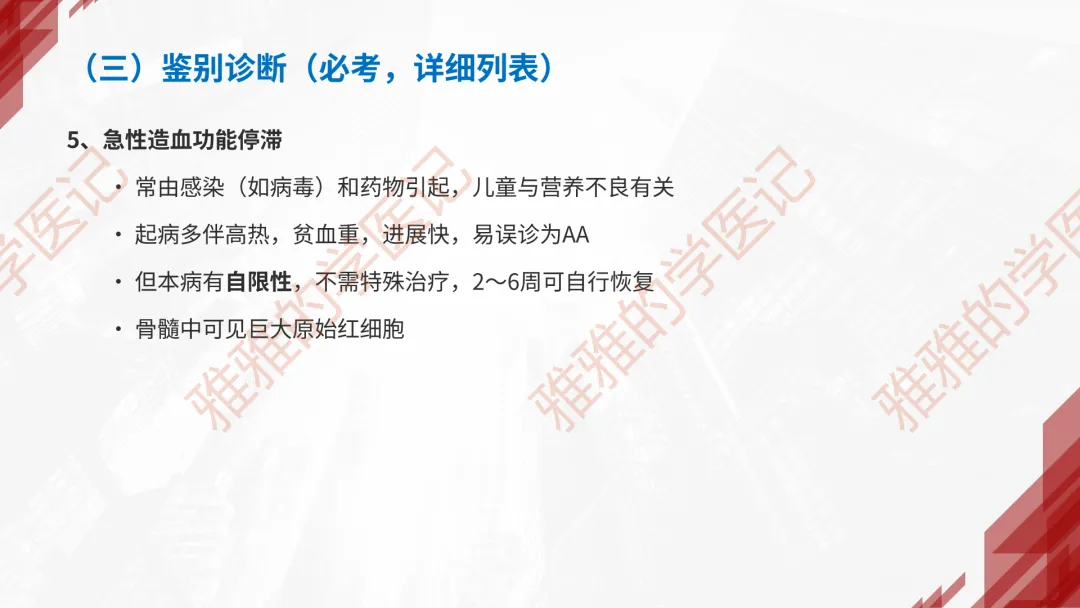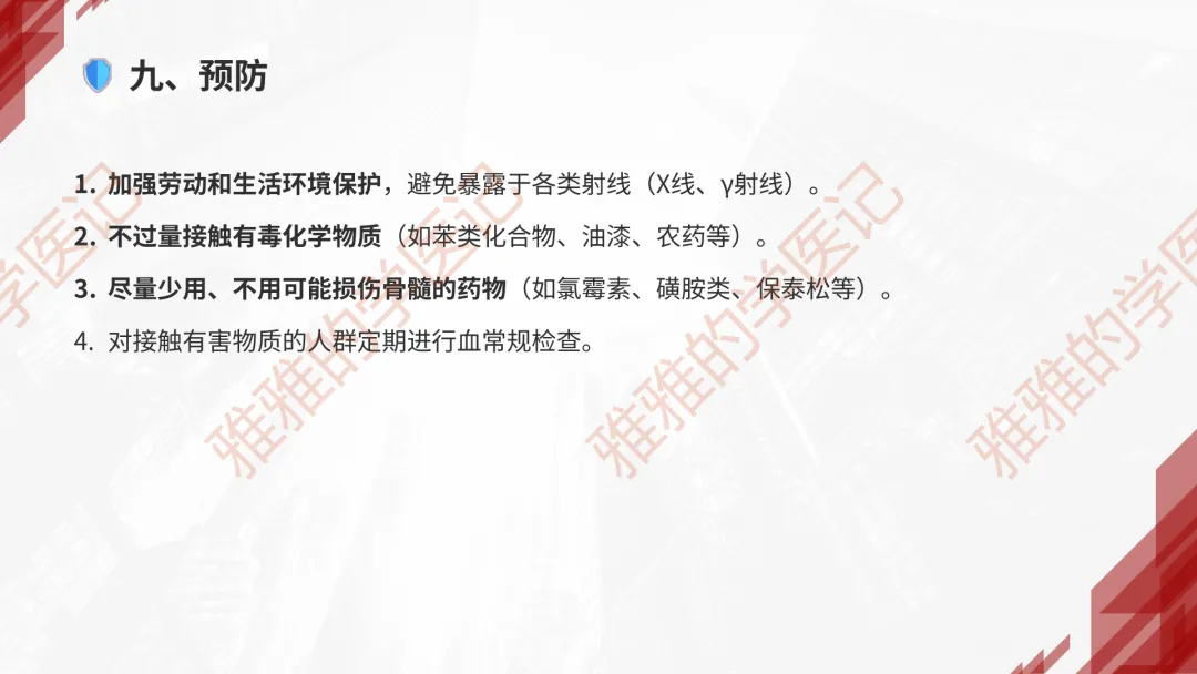 本PPT内容引用自《内科学(人卫第9、10版)》等权威文献,PPT版权归本公众号所有,制作与审稿均由小编独立完成。关注公众号为“雅雅的学医记”,获取更多专业健康知识。这份PPT凝聚了专业知识与临床经验,对再生障碍性贫血这一症状具有认识,并了解学习的意义,欢迎大家分享转发,共同学习,期待与大家的互动!目前学识有限,欢迎大家的指正。📚 本文配套资料:【PPT预览版】+【考点整理】PDF已上传学习通课程【雅雅的学医记】,加入课程即可下载,方便对照学习。后续更新内容:再生障碍性贫血(AA)多维学习笔记。- 知识点,需要不断积累,并梳理整理为自己的。加油!书山有路勤为径,学海无涯苦作舟。(韩愈)