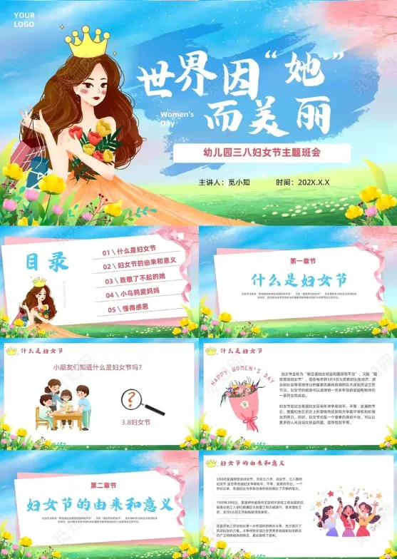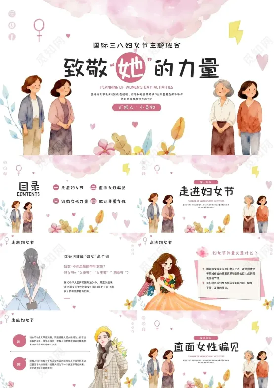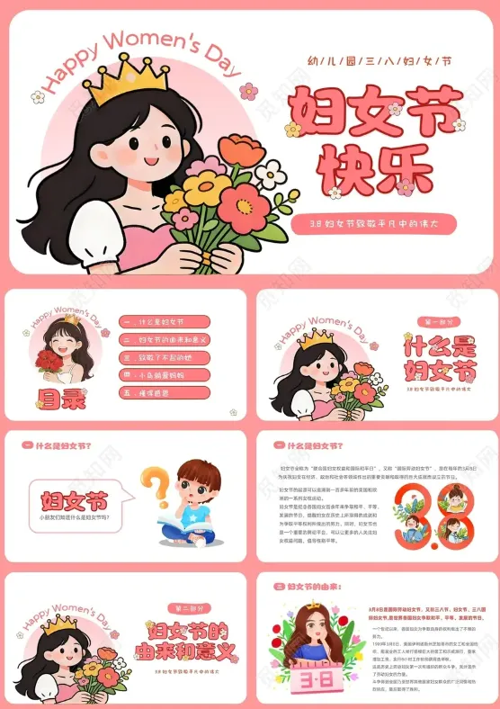 今天给大家带来10套三八妇女节主题班会PPT模板,可用于节日宣传、主题班会、活动策划等!