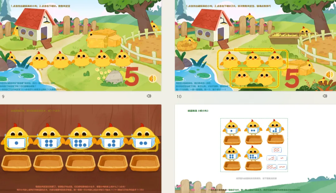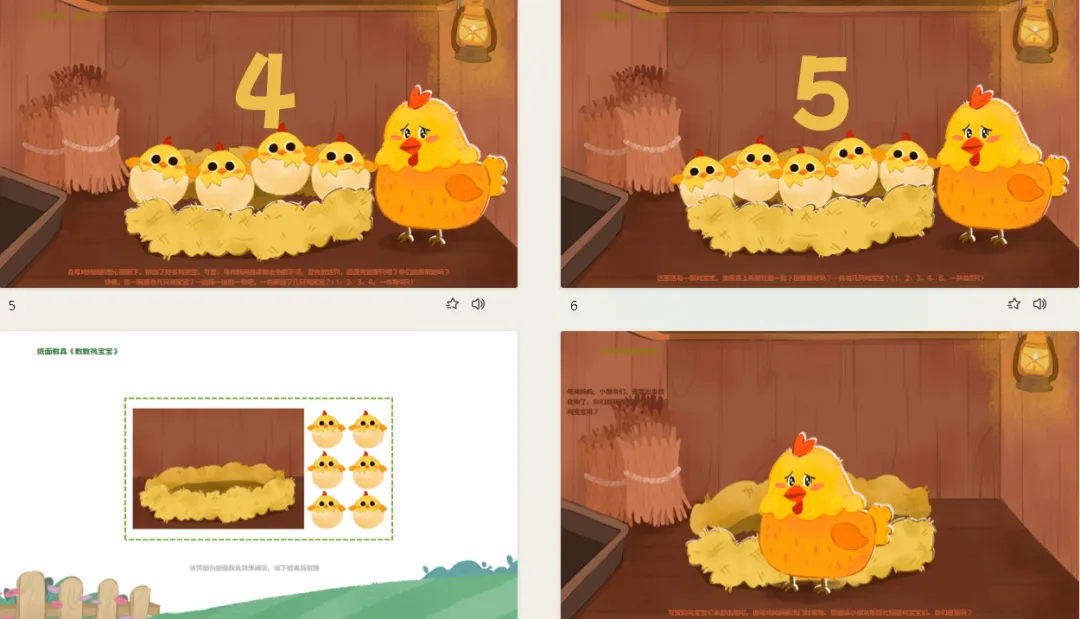 ——快看,这一窝里有几只鸡宝宝?一边指一边数一数吧。