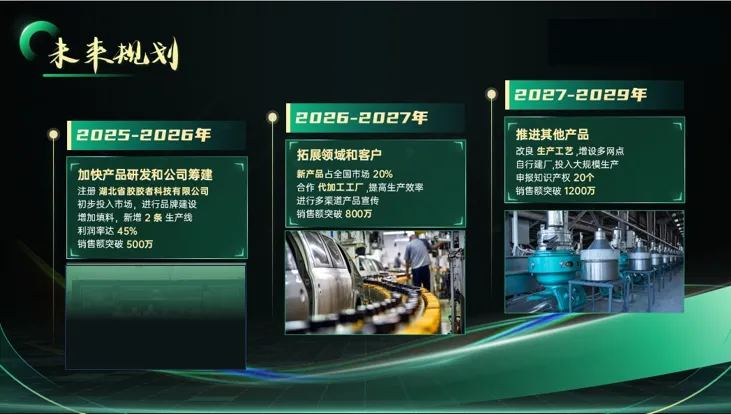 因此,企业为自己定一个长远宏大的目标是非常有必要的。一是为自己未来的发展指明方向,二是让评委、投资人看到项目未来前景。