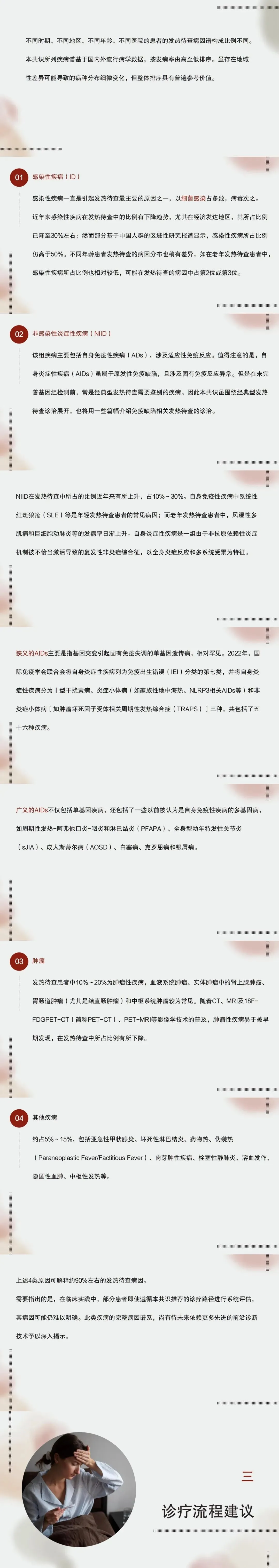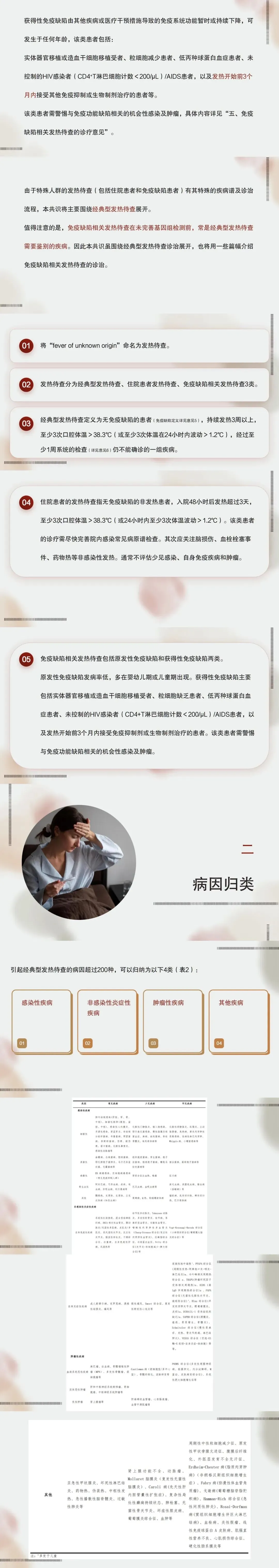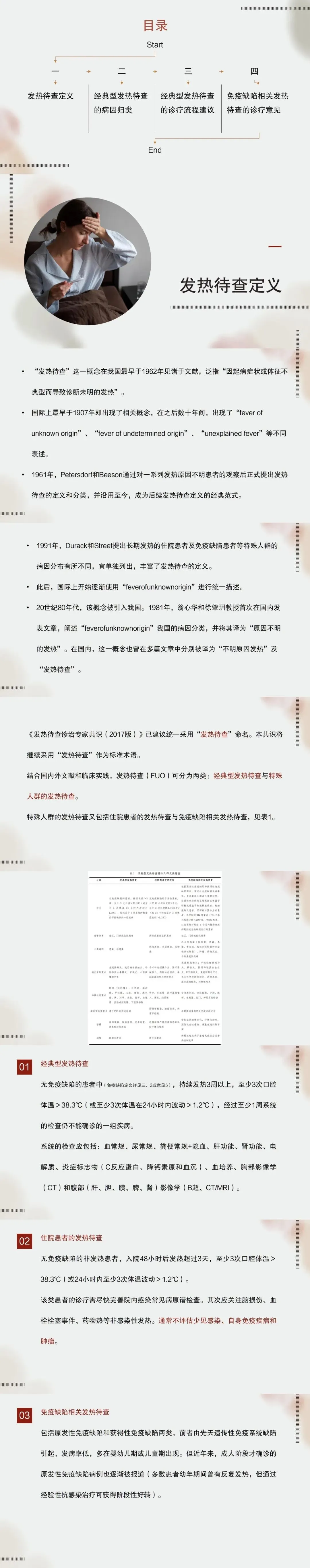 - 系统梳理发热待查定义、经典型发热待查的病因归类、经典型发热待查的诊疗流程建议、免疫缺陷相关发热待查的诊疗意见等内容;