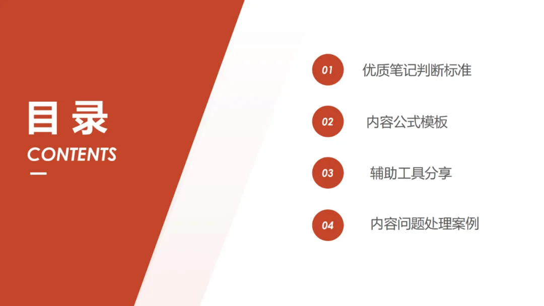 这份小红书培训课件围绕投流笔记公式展开,涵盖优质笔记判断标准、内容公式模板、辅助工具分享以及内容问题处理案例。