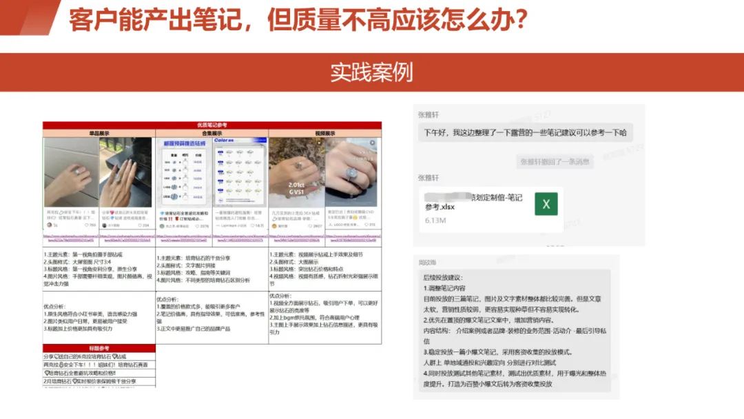 从笔记维度如标题、封面图、配图、正文、评论区等方面介绍了优质笔记的特点,强调真实分享、软性植入、品牌露出和种草转化。