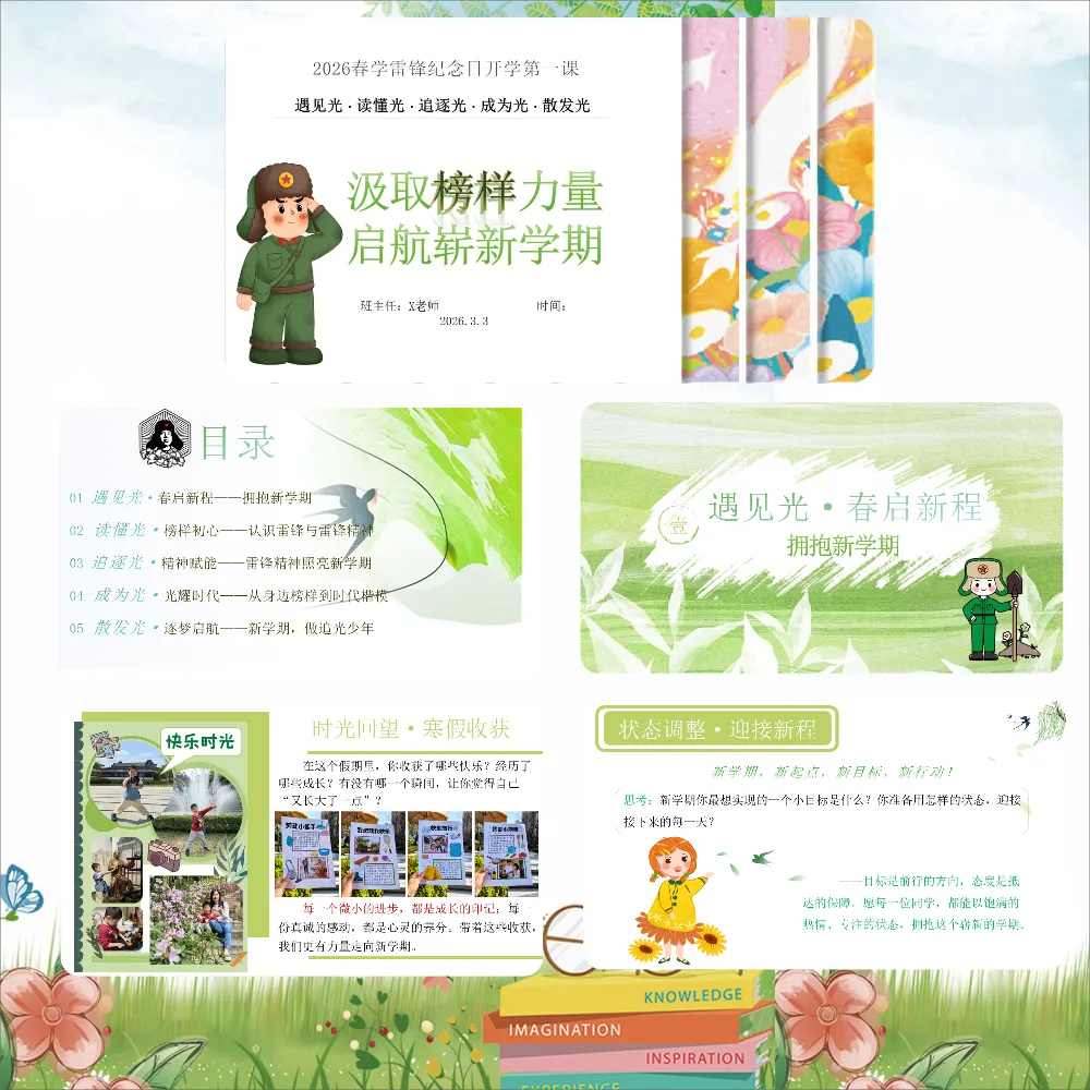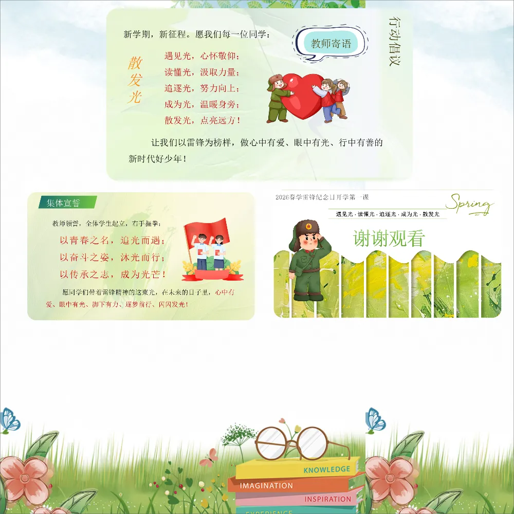 同学们,2026年春天已经到来,新学期的征程已经开启。愿你们带着雷锋精神这束光,心中有爱、眼中有光、脚下有力、逐梦前行、闪闪发光!