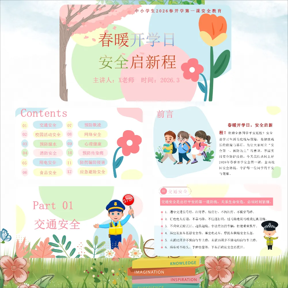 2026春季开学安全主题教育班会ppt+文字稿:春暖开学日,安全启新程