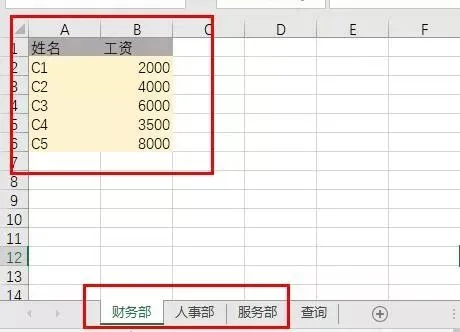 在Excel工作簿中,有N个部门的工资表数据。
