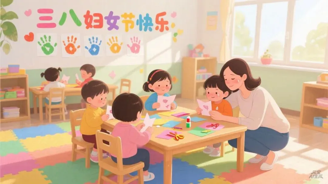 - **中班(4-5岁)**:制作“女神贺卡”——折叠卡纸,画妈妈的笑脸,粘贴皱纹纸做的“长头发”,写下简单祝福(“妈妈,我爱你!”)。