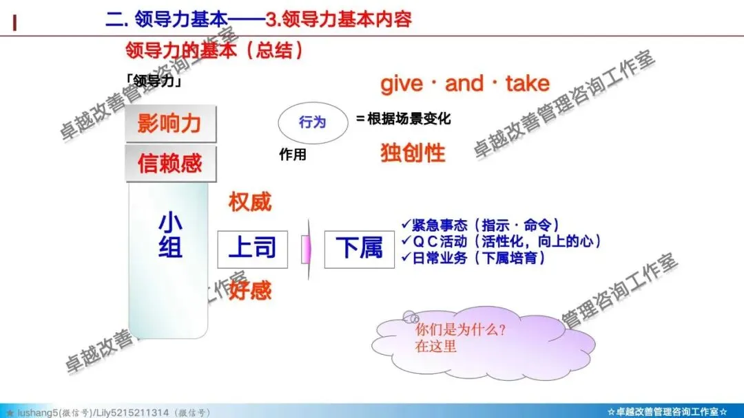 · 领导力解决“人心”问题,确保团队高效愉快地做事。