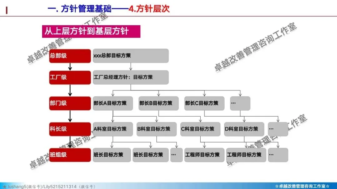 · 高层:制定年度方针,如“缩短产品交付周期30%”。